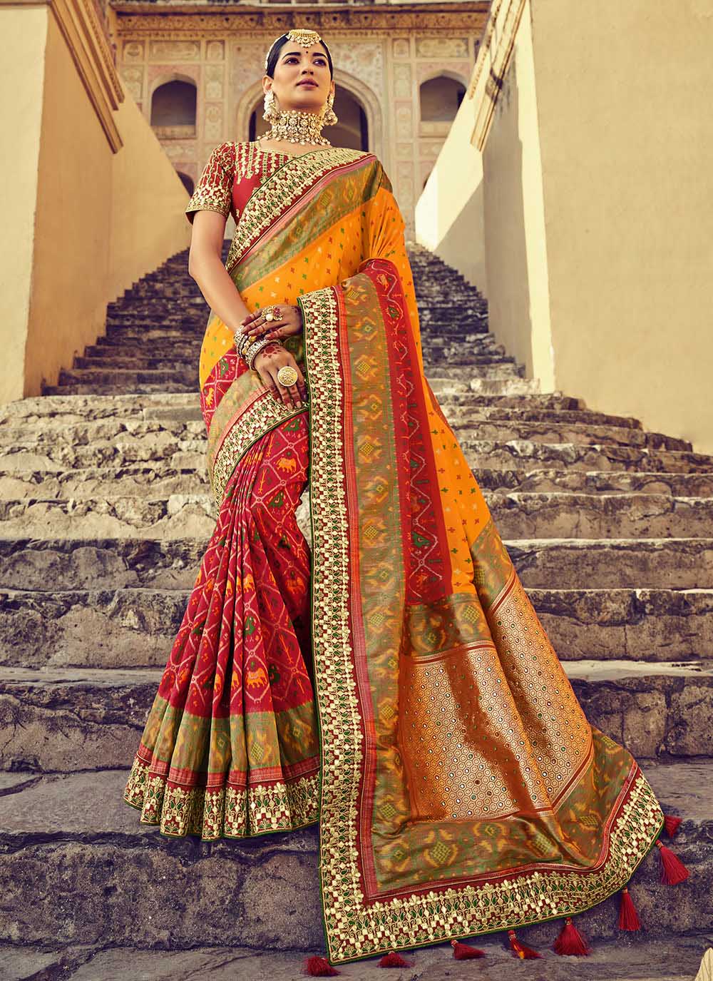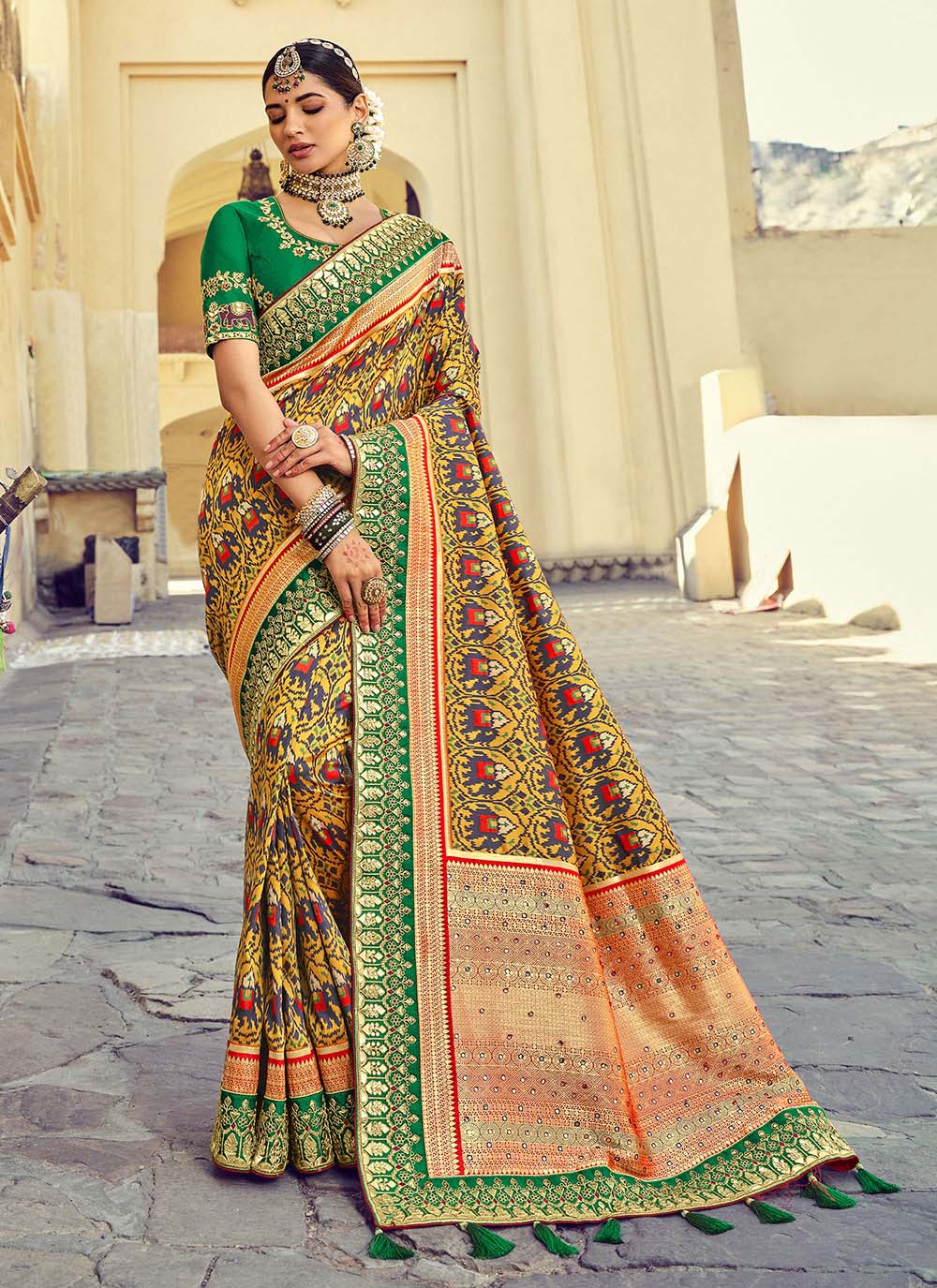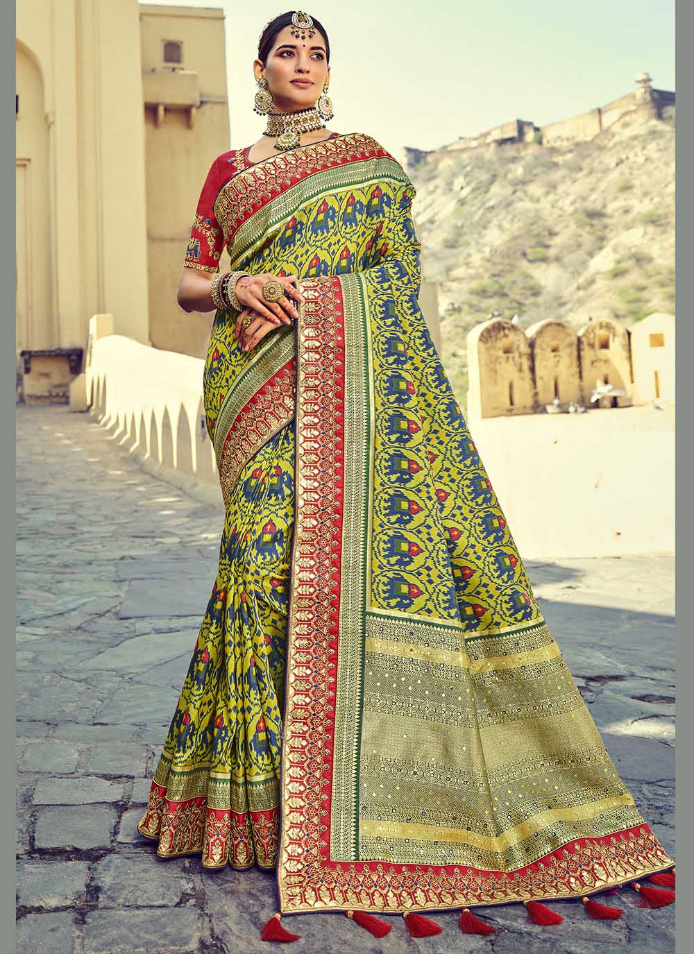 Grab These Heavy Designer Look Saree in Lovely Colored pair With Designer Blouse.These Saree And Blouse Are Fabricated On Silk Based.its Beautified With Wevon Designer And Mirror Embroidery Work.
