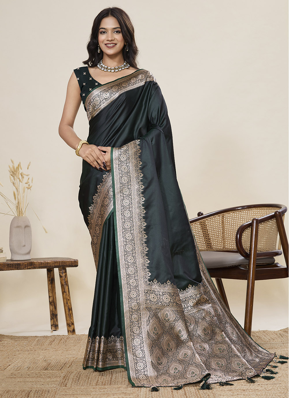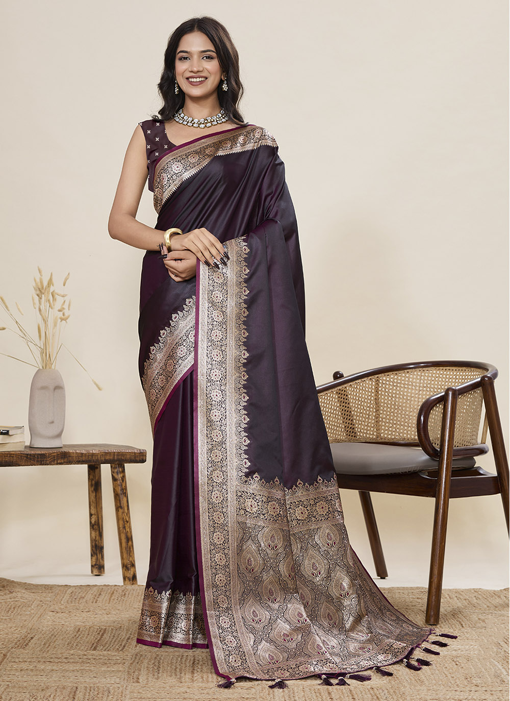 Looking This Party Wear Saree Paired With Blouse.This Saree And Blouse Are Satin Silk Fabric With Woven Jari Border Galla Designer. Buy This Pretty Saree Now.