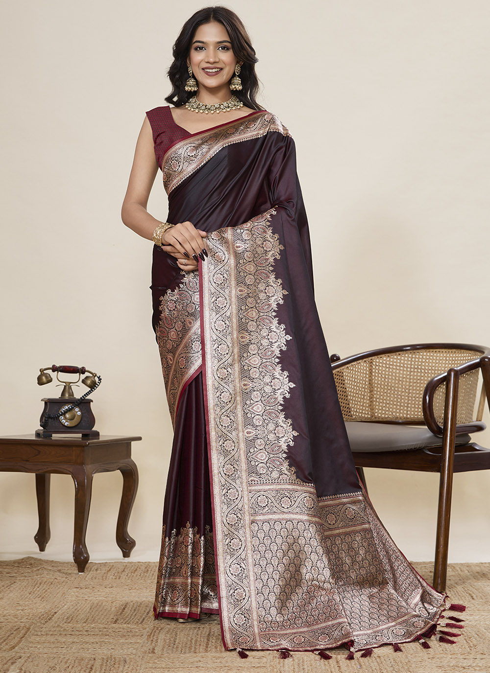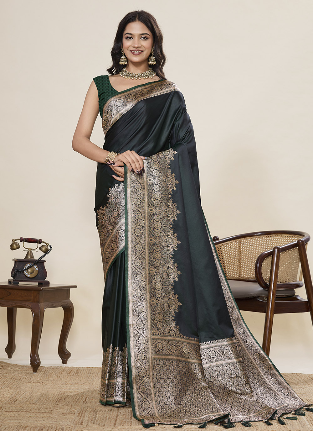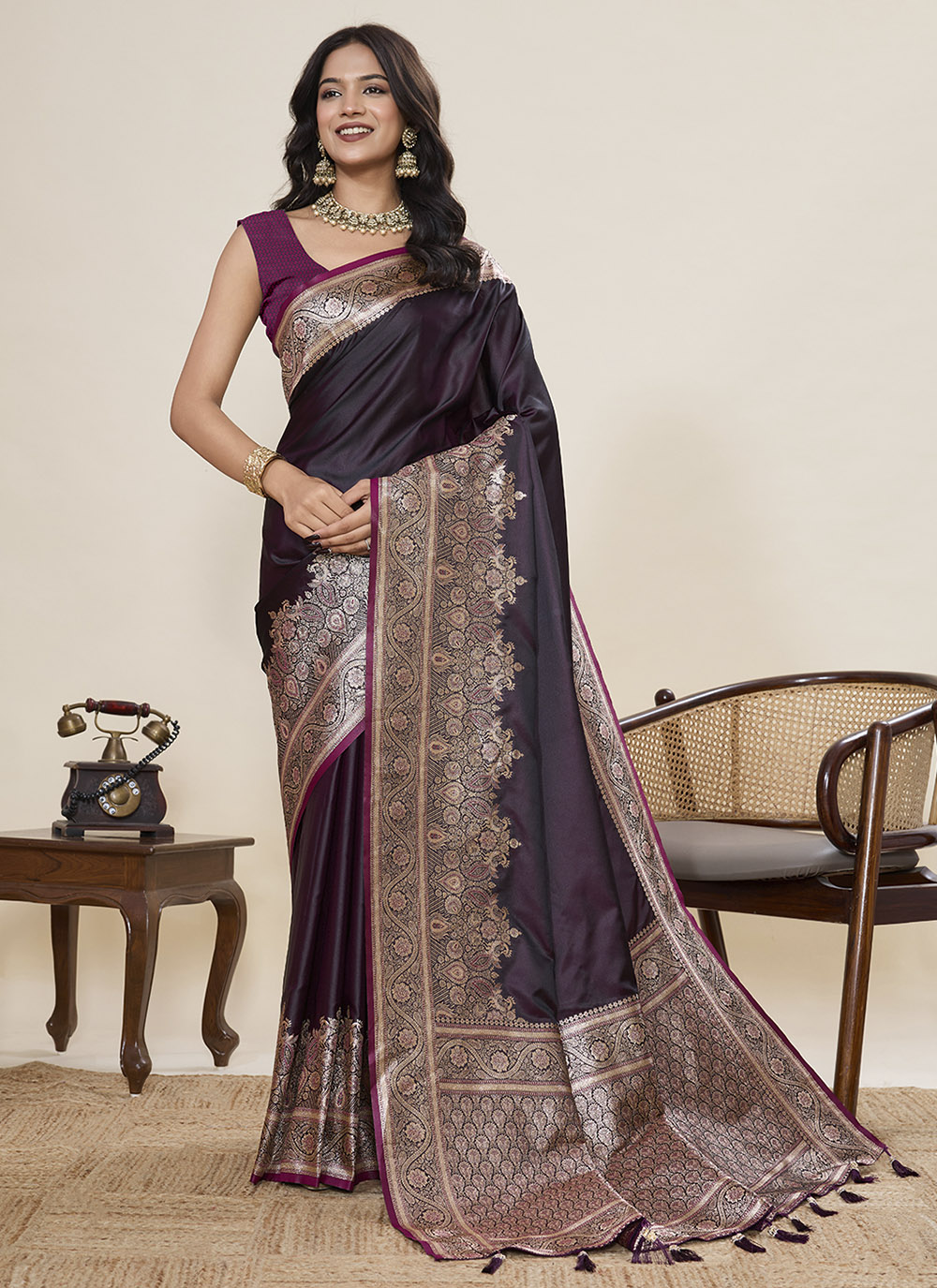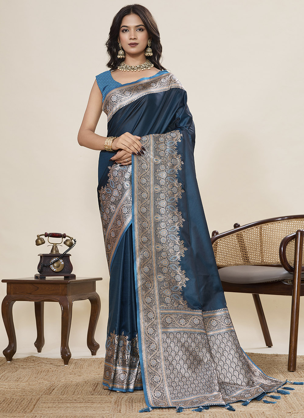 Garb This Party Wear Saree Paired With Blouse.This Saree And Blouse Are Satin Silk Fabric With Woven Jari Border Galla Designer. Buy This Pretty Saree Now.