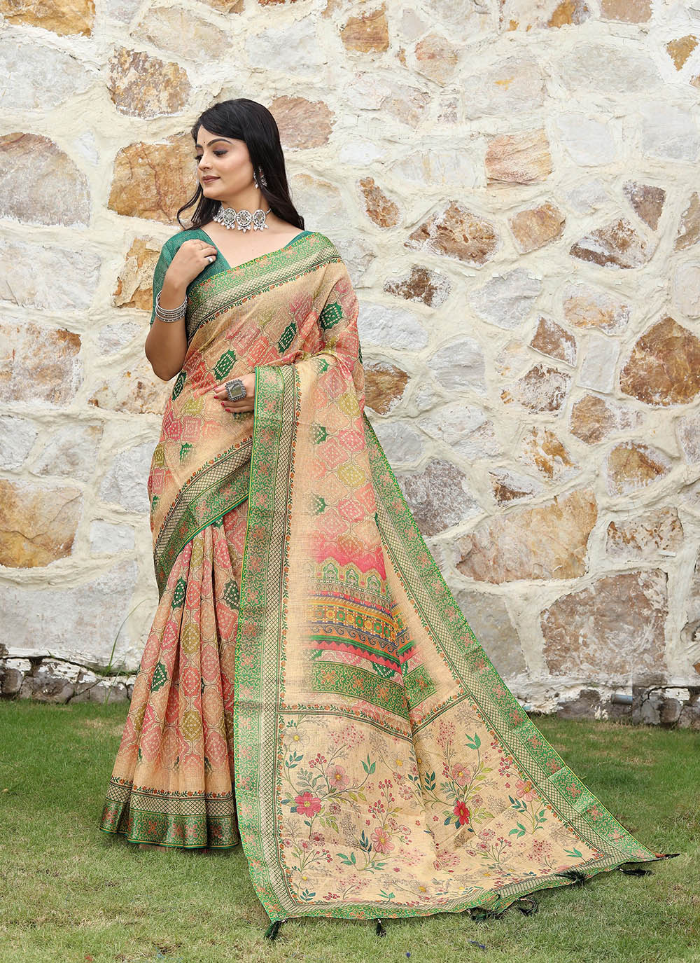 Look These Fastive Saree in Fine Colored.These Saree Are Cotton Shimmer And Blouse is Fabricated On Cotton Shimmer Pair.Its Beautified With Wevon Jari Border With Designer Printed.