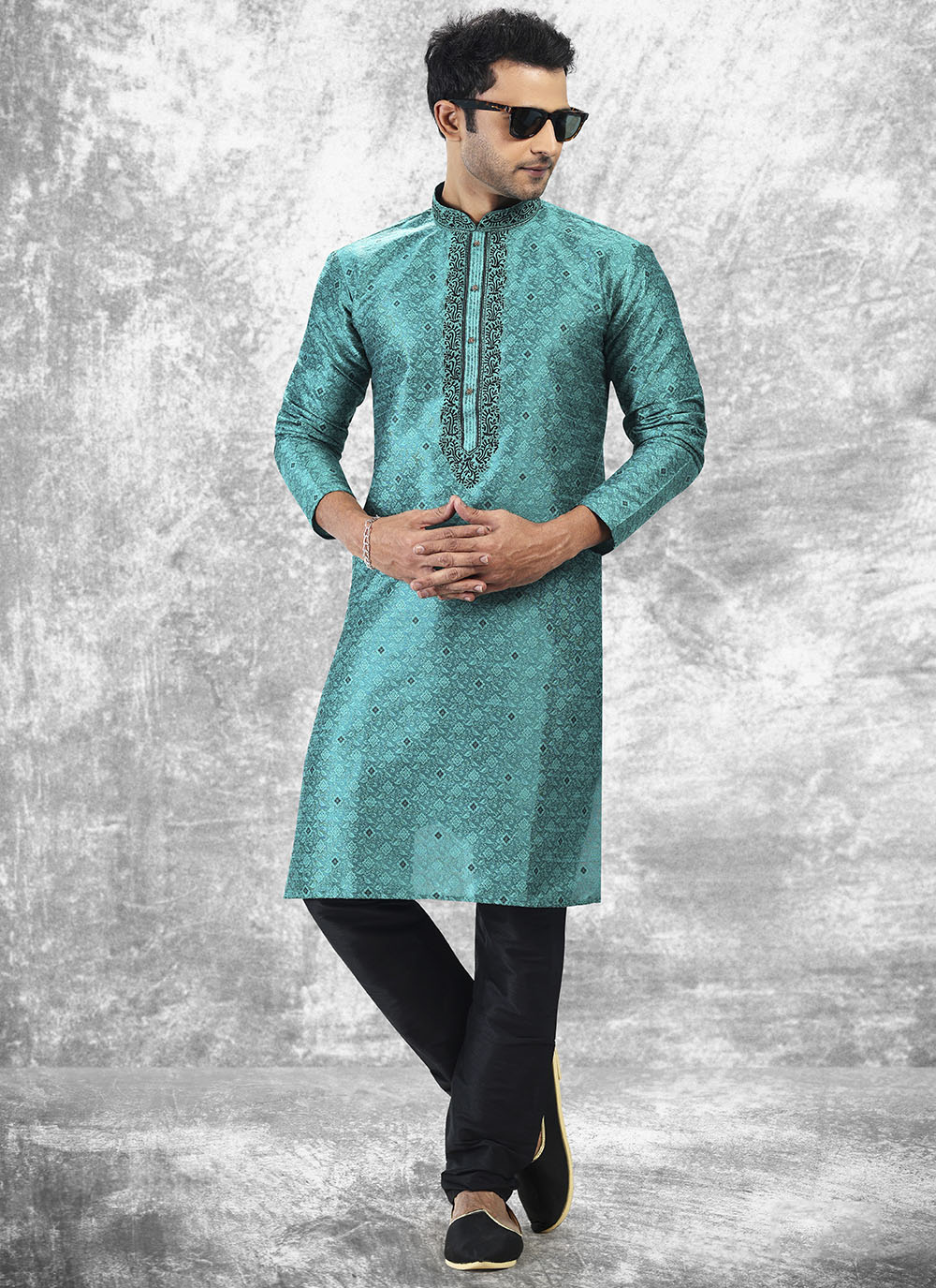 Looking These Party Wear Mans Wear Kutra Payjama wearing this fashionable. These Kurta Are Jacquard Silk And Payjama Art Silk finest Fabriced With Woven Designer With Mirror,Thread Embroidery Work.