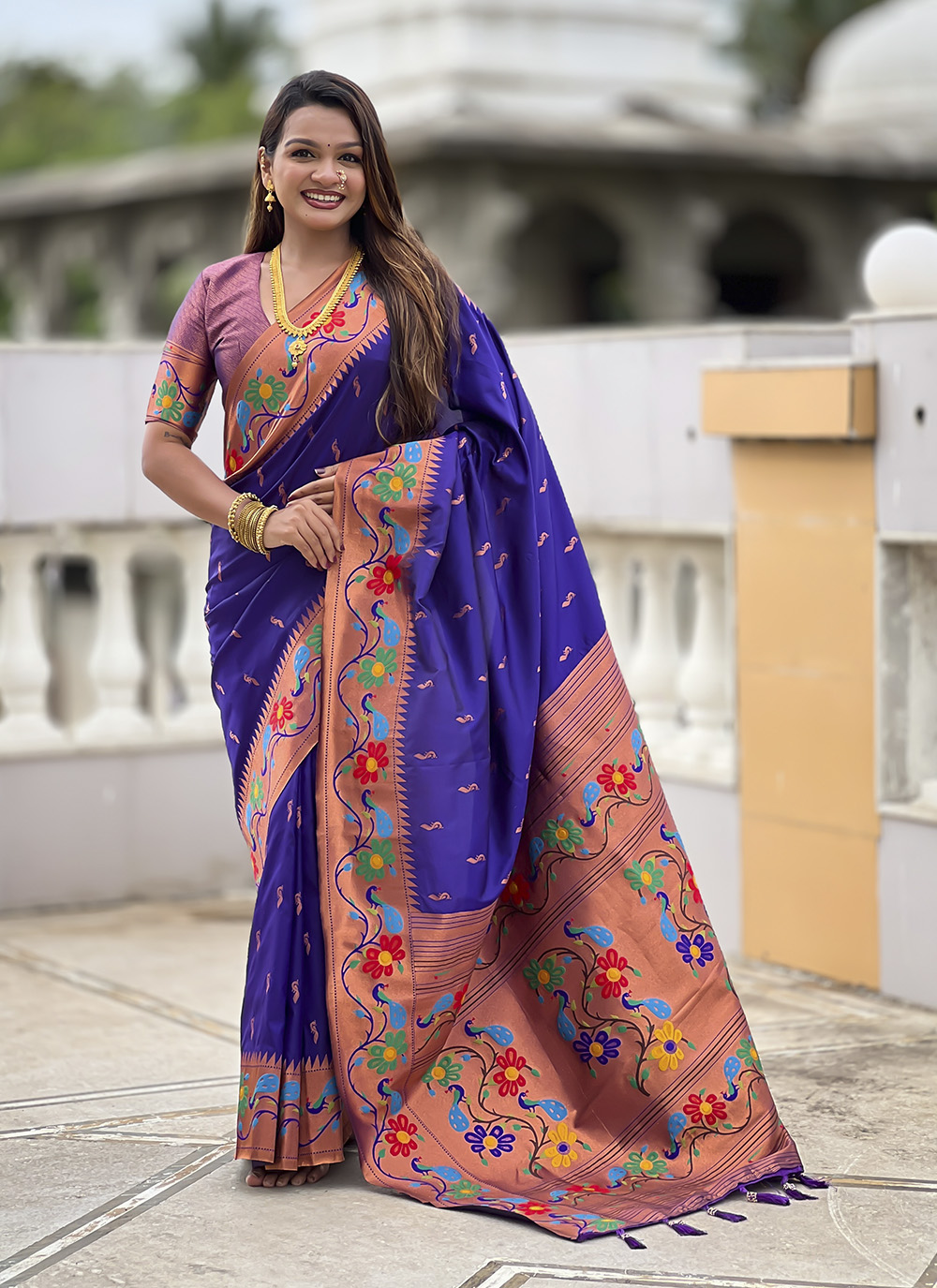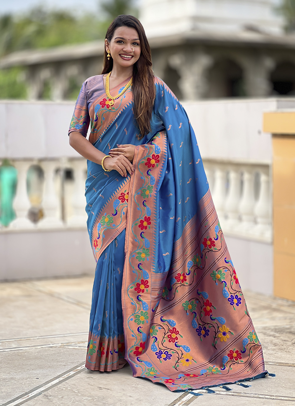 Garb These Party Wear Saree in Fine Colored.These Saree Are Paithani Silk And Blouse is Fabricated On Paithani Silk.Its Beautified With Weaving Jacquard Meenakari Designer.