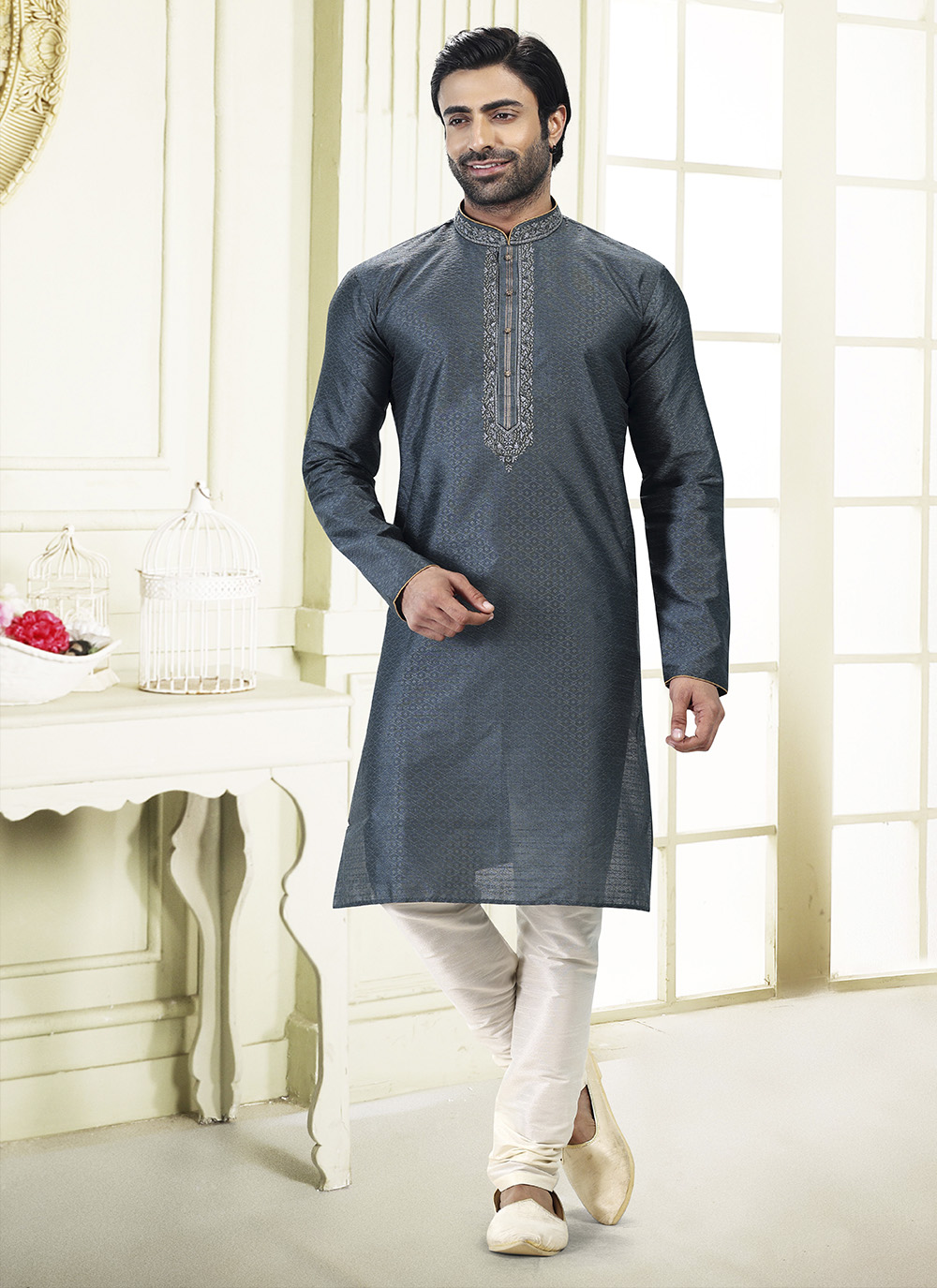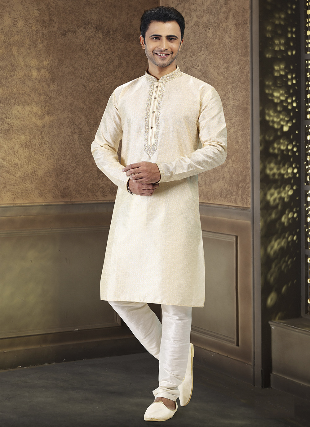 Looking These Party Wear Mans Wear Kutra Payjama wearing this fashionable. These Kurta Are Jacquard Silk And Payjama Art Silk finest Fabriced With Woven Designer With Mirror,Thread Embroidery Work.