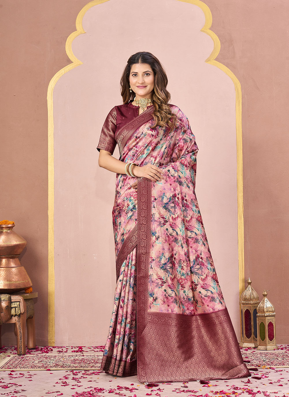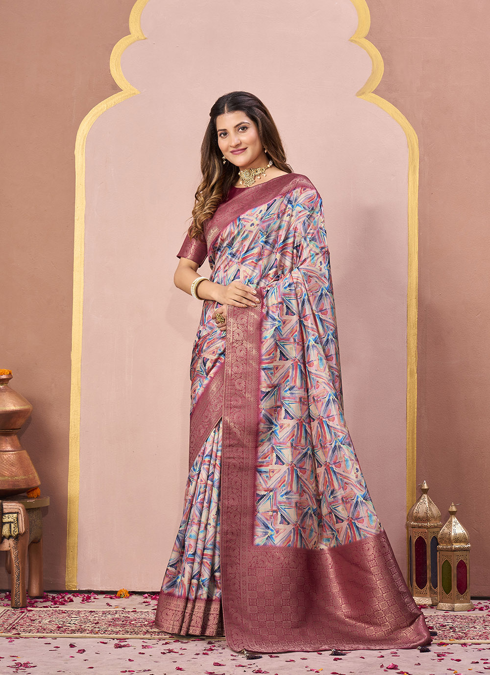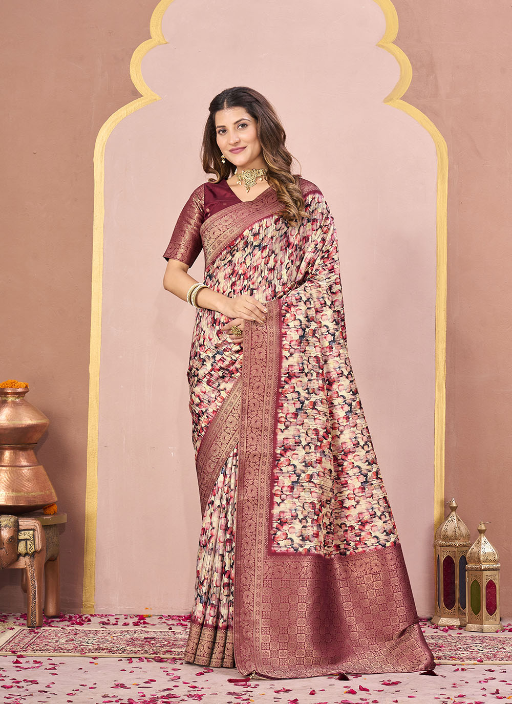 Look Attractive These Designer Party Wear Saree in Fine Colored.These Saree Are Tussar Silk And Blouse Tussar Silk is Fabricated.Its Beautified Woven Pallu Border Desiger With Digital Printed.