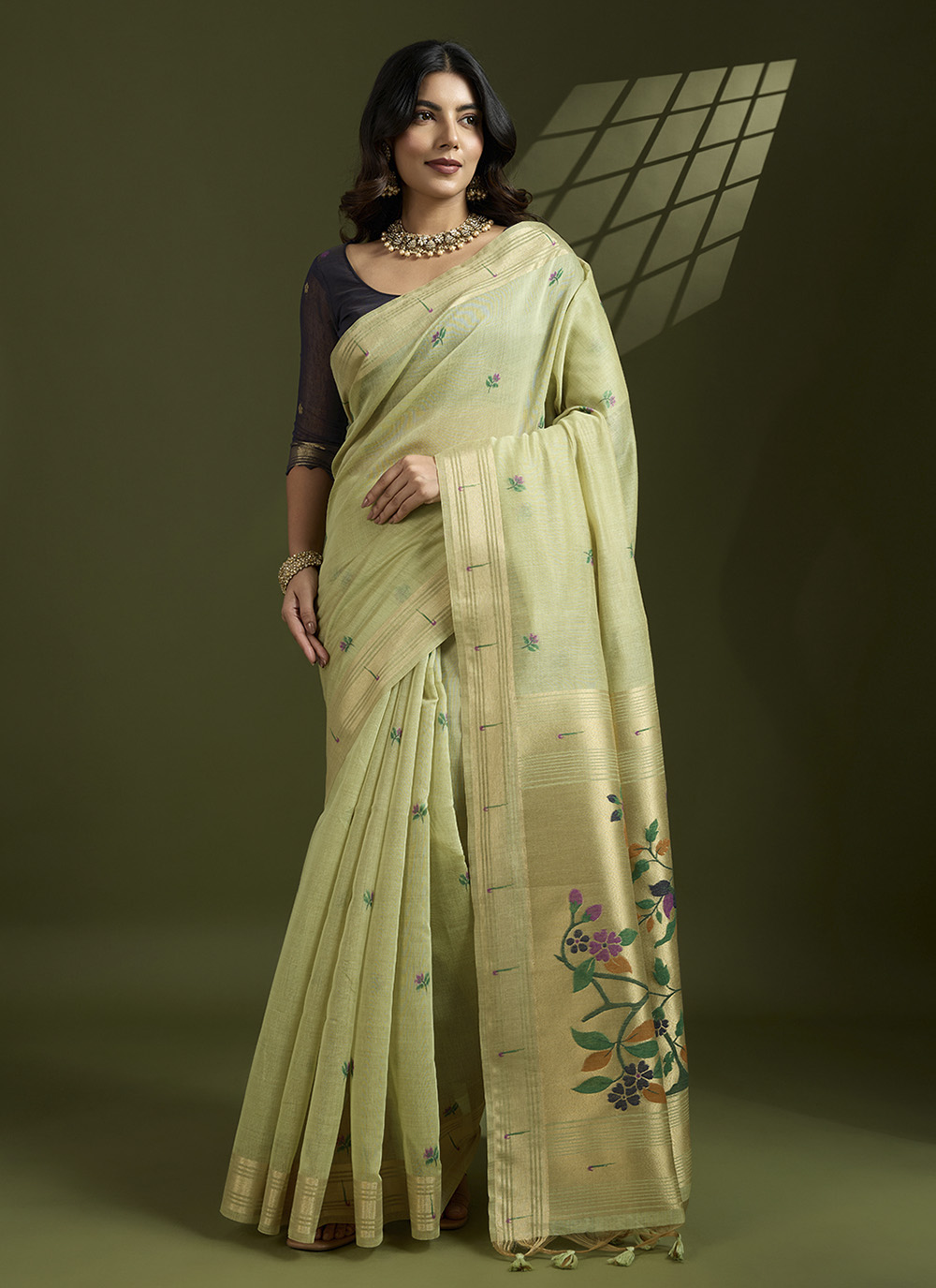 Garb These Festive Wear Saree in Fine Colored.These Saree And Blouse is Fabricated On Muga Cotton.Its Beautified With Multy Thread Weaving Paithani Designer.