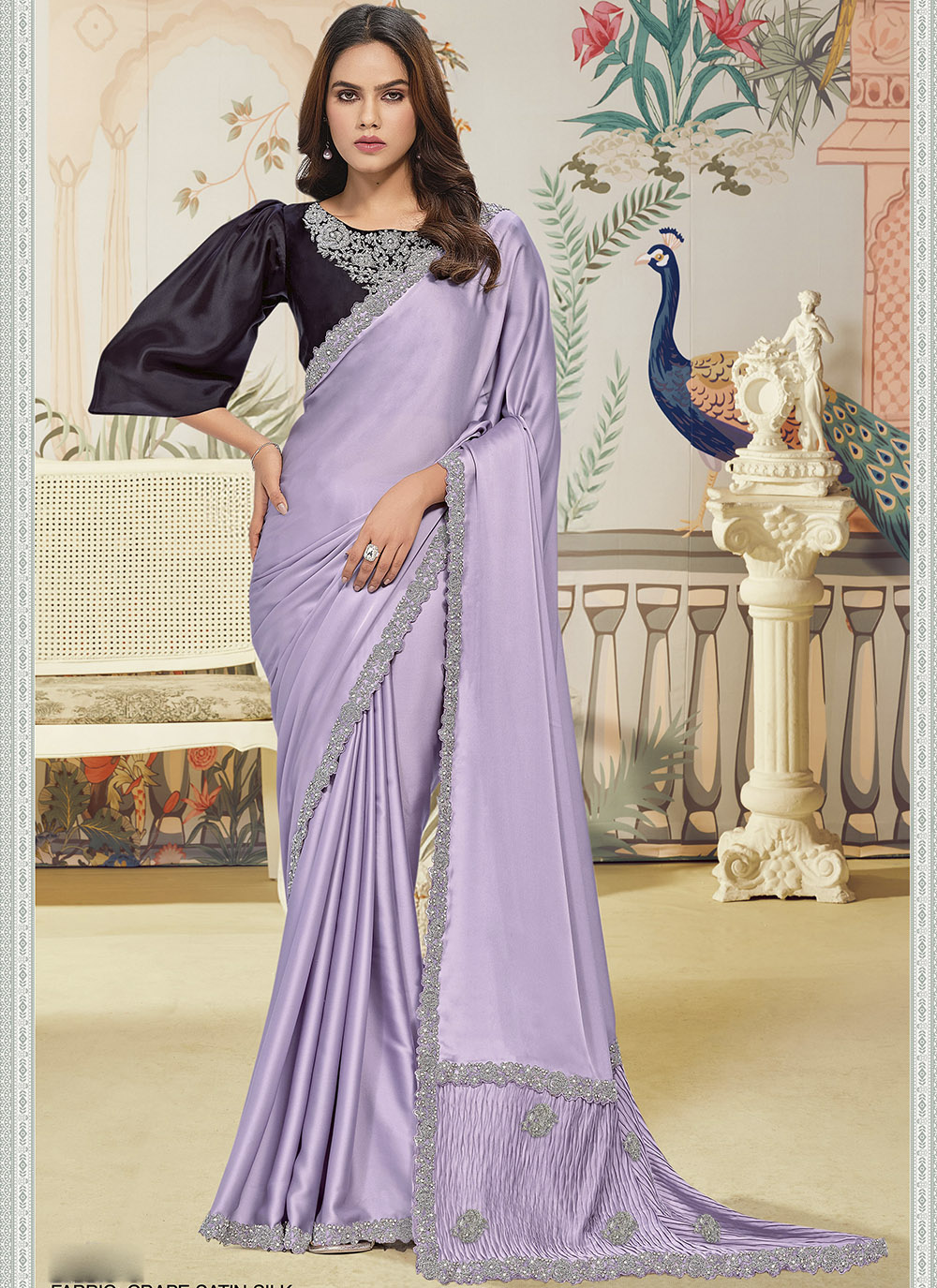 Look Attractive These Designer Party Wear Fancy Saree in Fine Colored.These Saree Are Crepe Satin Silk And Blouse Satin Silk is Fabricated.Its Beautified Fancy Sequance Embroidery, Hand Work.