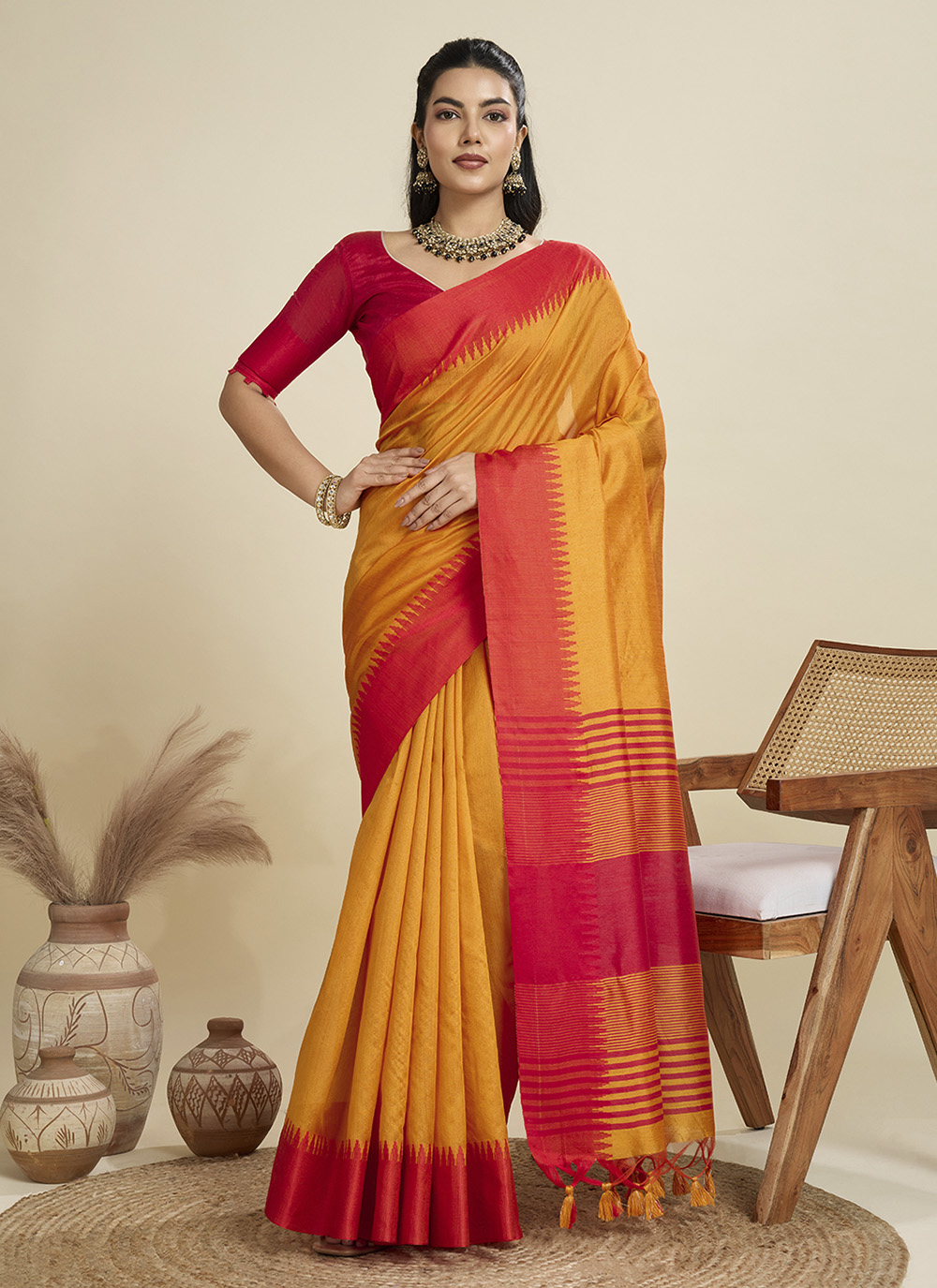 Garb These Festive Wear Saree in Fine Colored.These Saree And Blouse is Fabricated On Khadi Raw Silk.Its Beautified With Wevon Pallu Border Gala Designer.