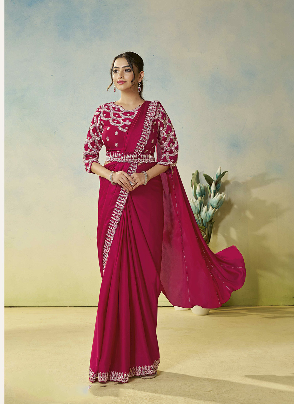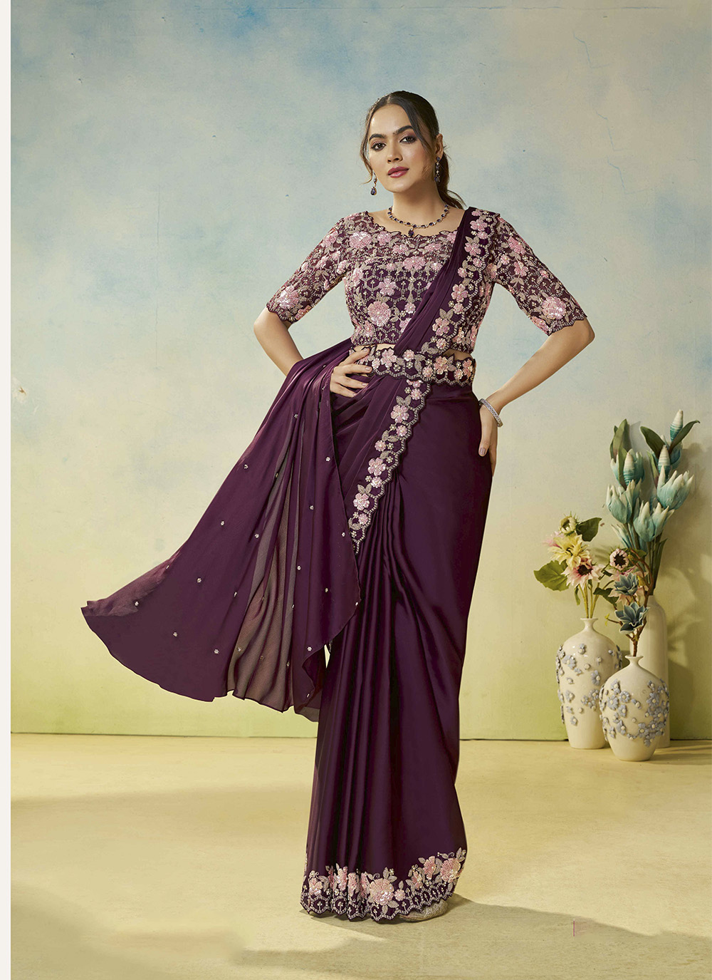 Look Attrective These Designer Party Wear Fancy Ready To Wear Saree With Blouse in Fine Colored.These Saree Are Satin Silk And Blouse Satin Silk is Fabricated.Its Beautified Solid,Desiger Dual Sequance Embroidery With Pearl, Stone Hand Work.