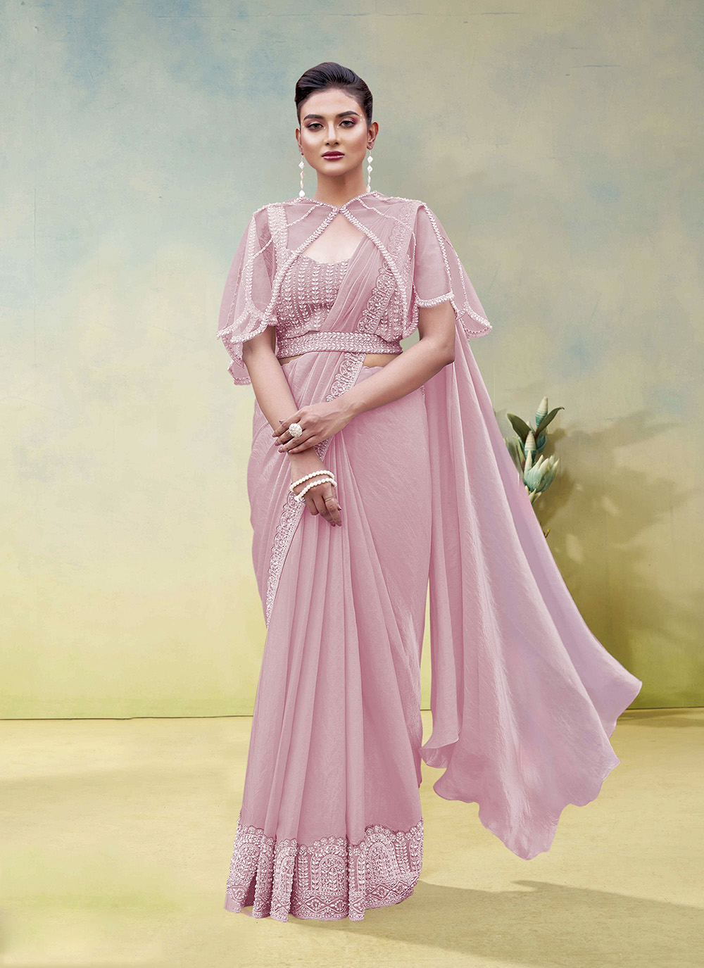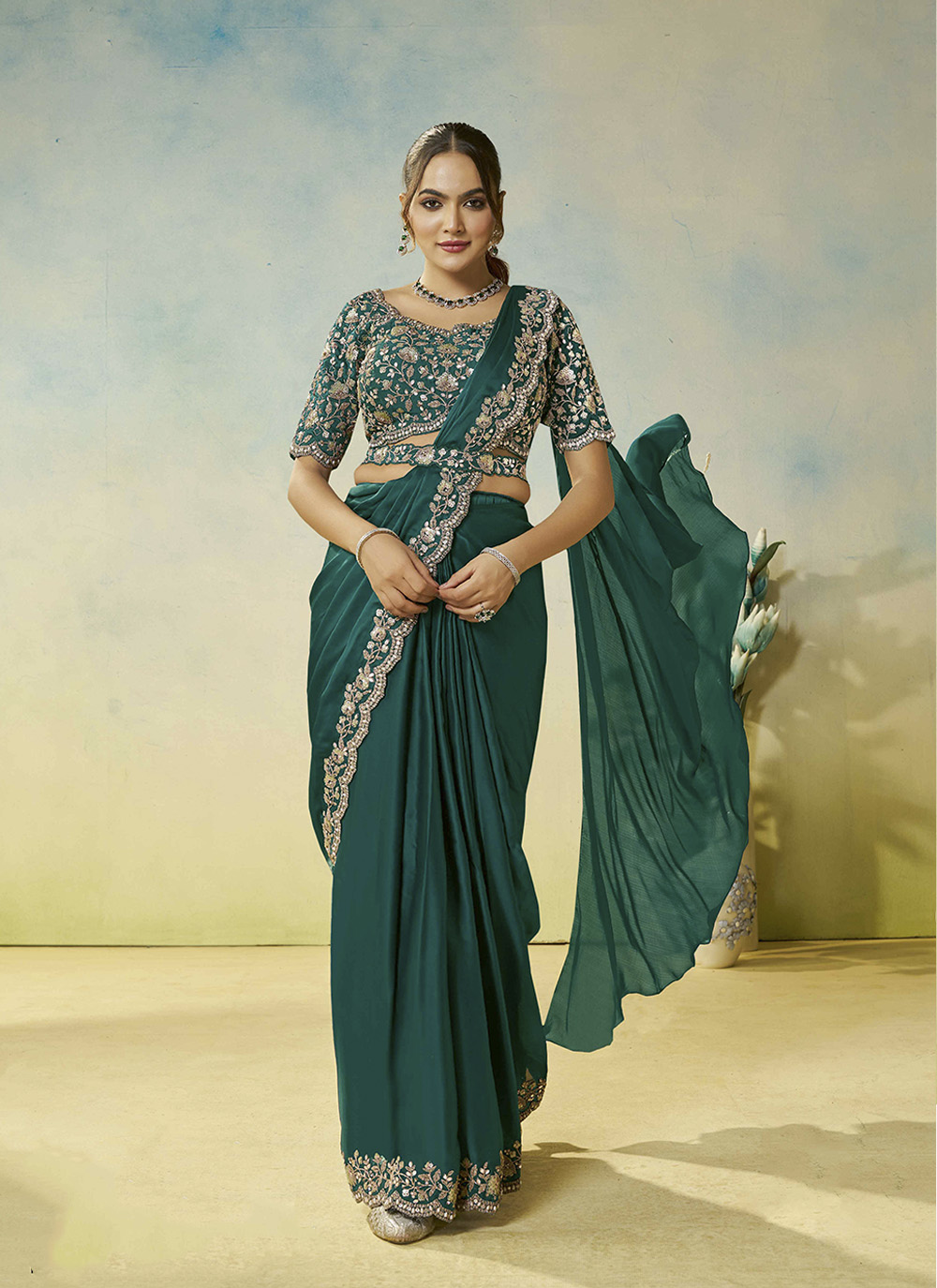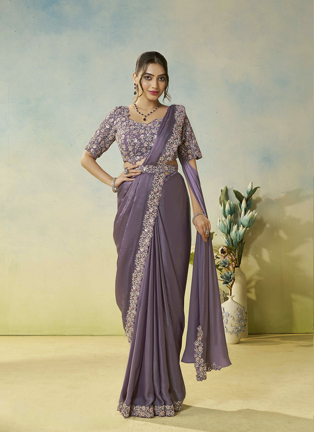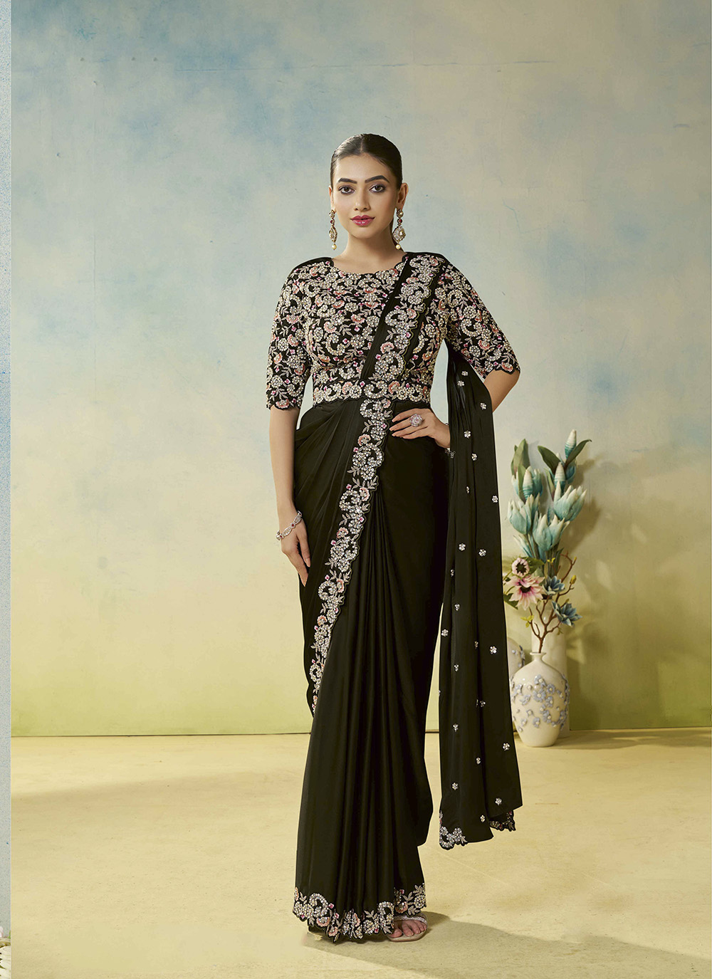 Look Attrective These Designer Party Wear Fancy Ready To Wear Saree With Blouse in Fine Colored.These Saree Are Crepe Satin Silk And Blouse Malai Satin is Fabricated.Its Beautified Solid,Desiger Dual Sequance Embroidery With Hand Work.