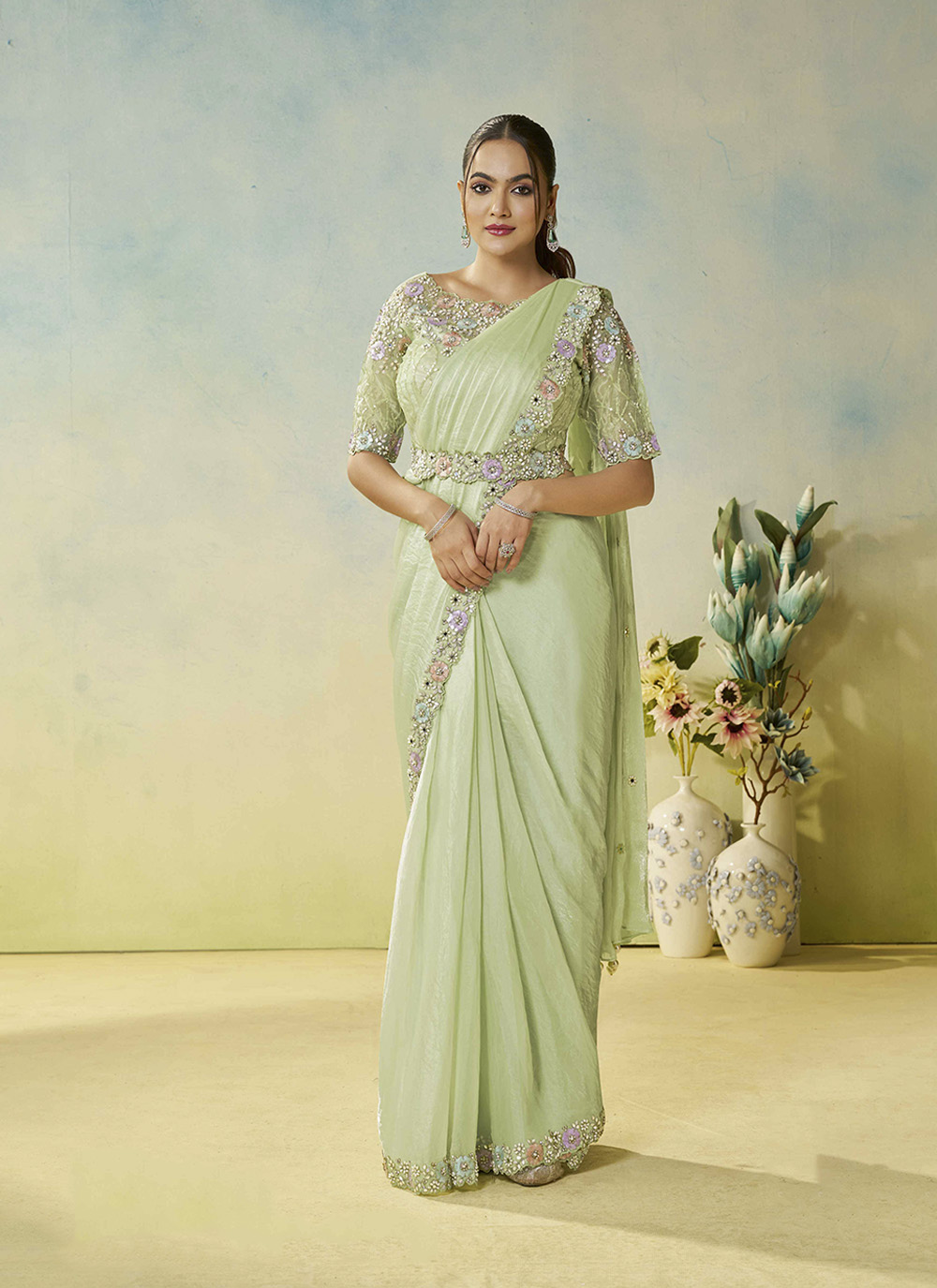 Look Attrective These Designer Party Wear Fancy Ready To Wear Saree With Blouse in Fine Colored.These Saree Are Satin Silk And Blouse Organza Tissue is Fabricated.Its Beautified Solid,Desiger Sequance Embroidery With Silver Stone Hand Work.