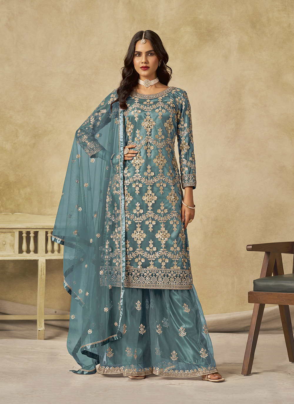 Looking These Beautiful Party Wear Fine Color Plazzo Suits.These Top Are Net And Dupatta Are Net And Bottom Net Fabricated.Its Beautified With Designer Sequance Embroidery Work.