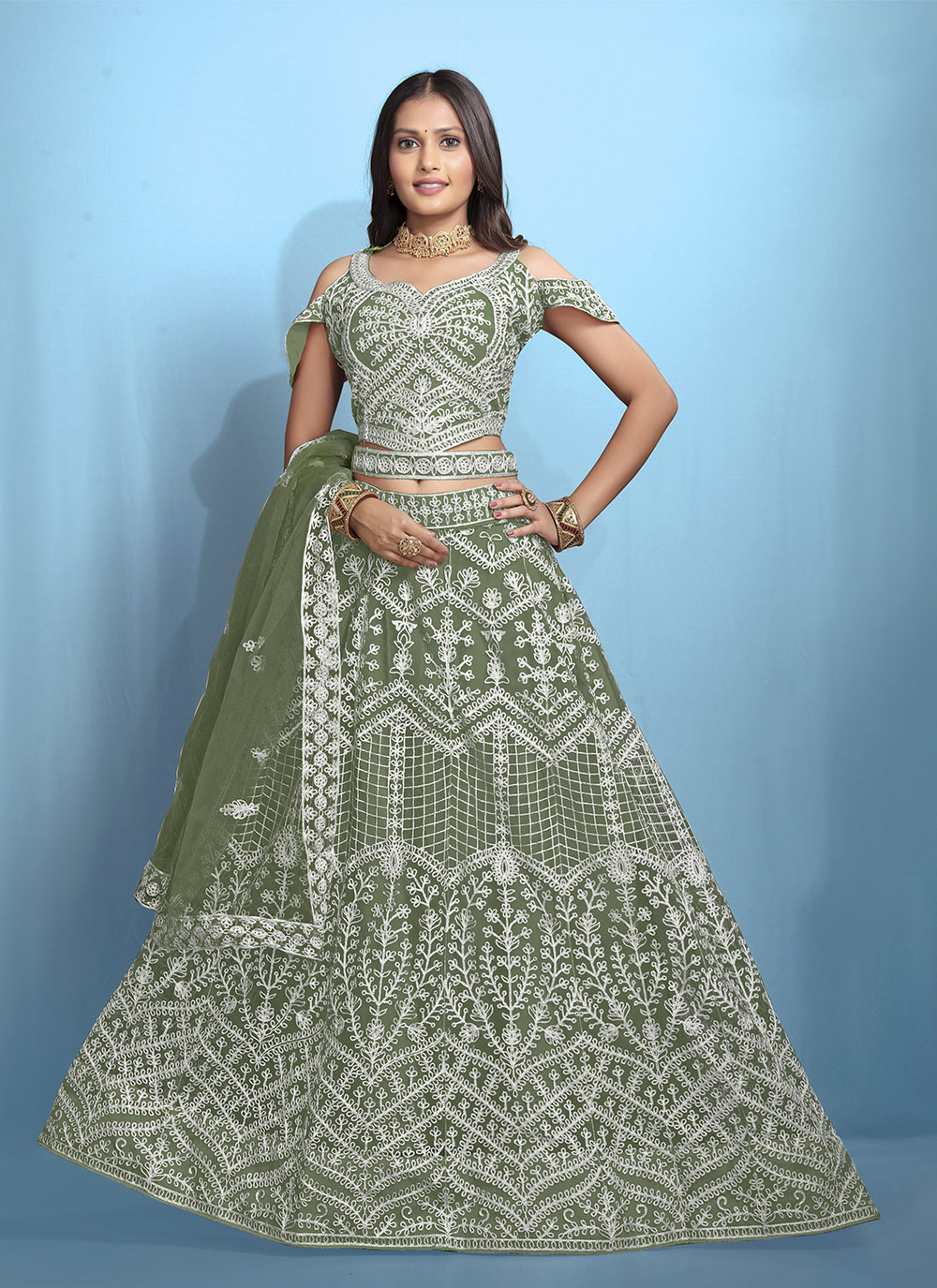 Grab These Beautiful Colored Lehenga Choli.These Lehenga and Dupatta Are Fabricated On Net Pair With Net Blouse.Its Beautified With Designer Thread Embroidery Work.