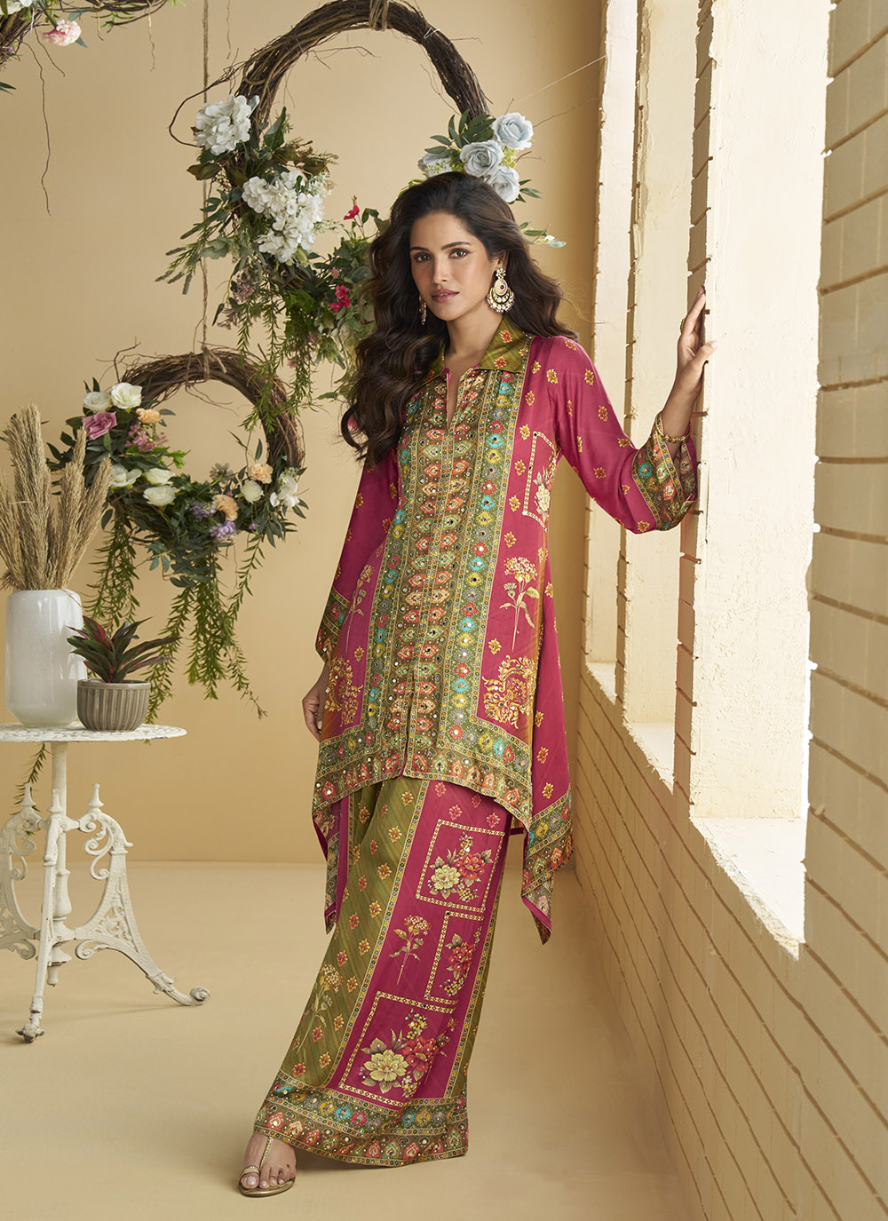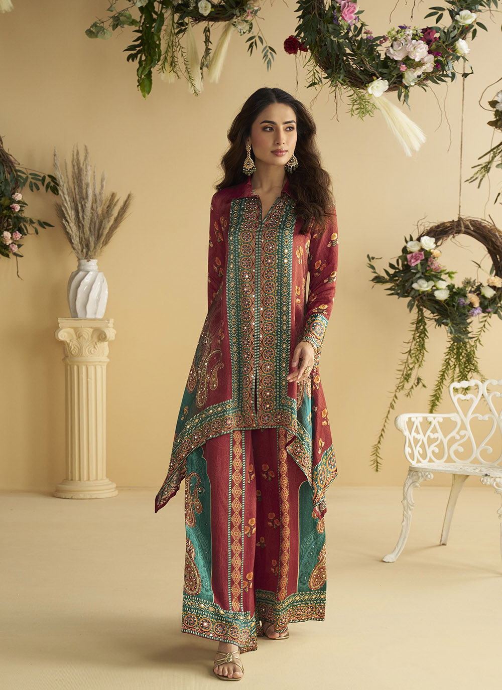 Attractive These Party Wear Free Size Stitched Co Ord Top With Plazzo in Fine Colored.These Top And Bottom Are Crepe Fabriced.Its Beautified With Printed Designer With Embroidery Work.