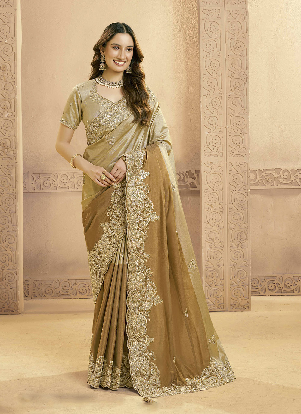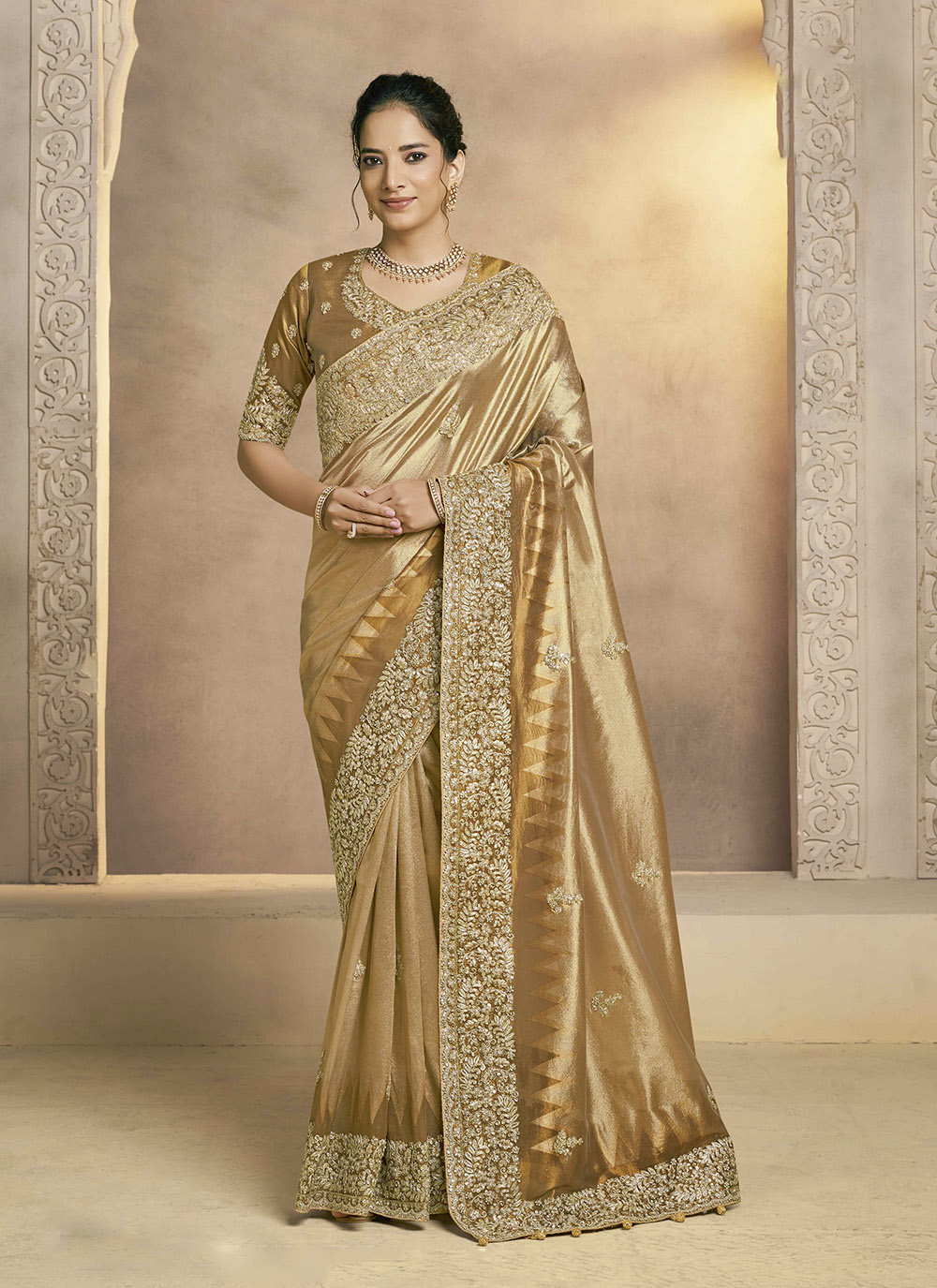 Look Attractive These Designer Party Wear Fancy Saree in Fine Colored.These Saree Are Matallic Jari Tissue Silk And Blouse Matallic Jari Tissue Silk is Fabricated.Its Beautified Fancy Traditional Motifs,Cutdana Hand Work.