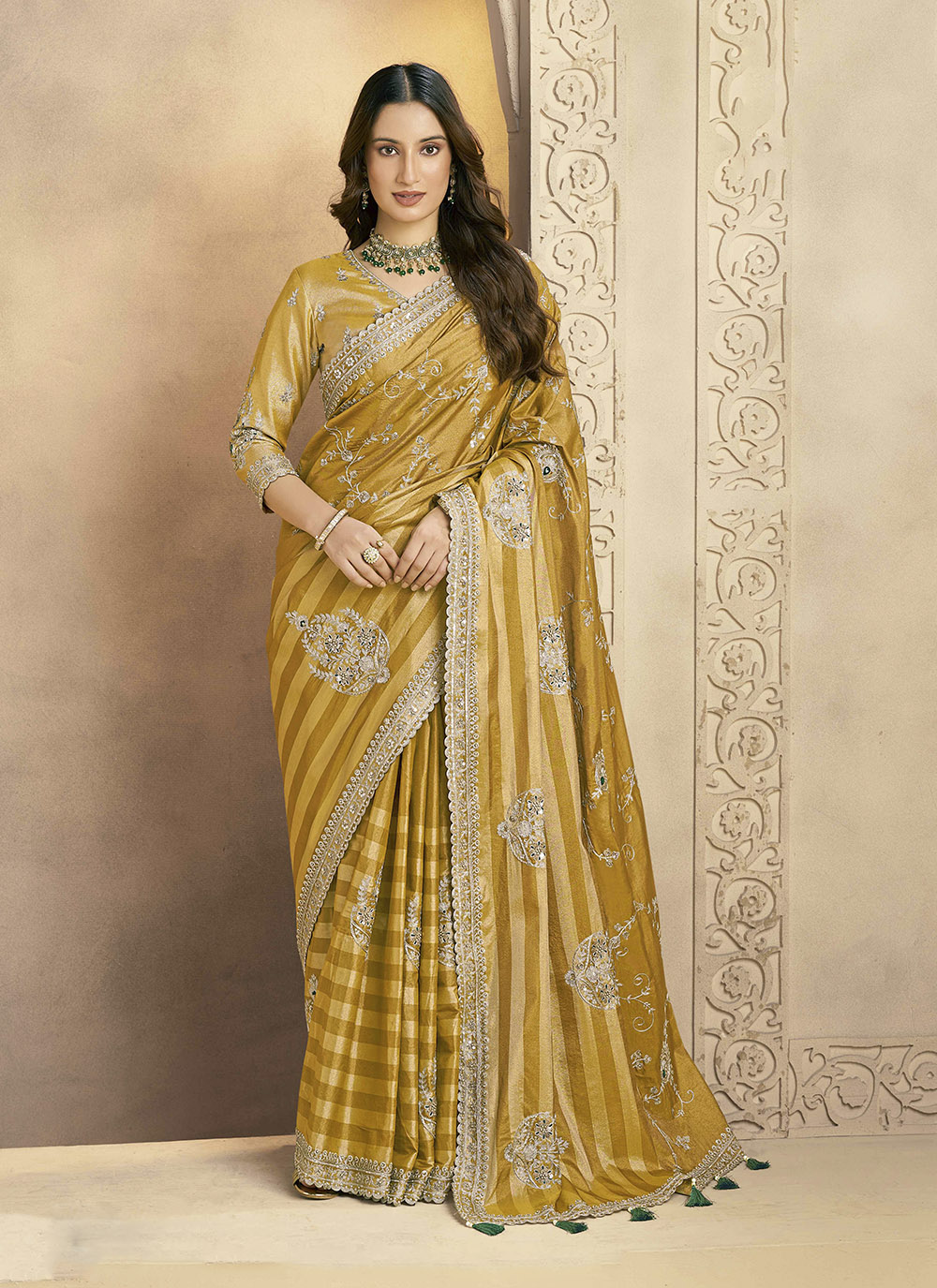 Look Attractive These Designer Party Wear Fancy Saree in Fine Colored.These Saree Are Matallic Kora Jari Silk And Blouse Matallic Kora Jari Silk is Fabricated.Its Beautified Fancy Sandwich Sequance,Beads Work,Scallops.
