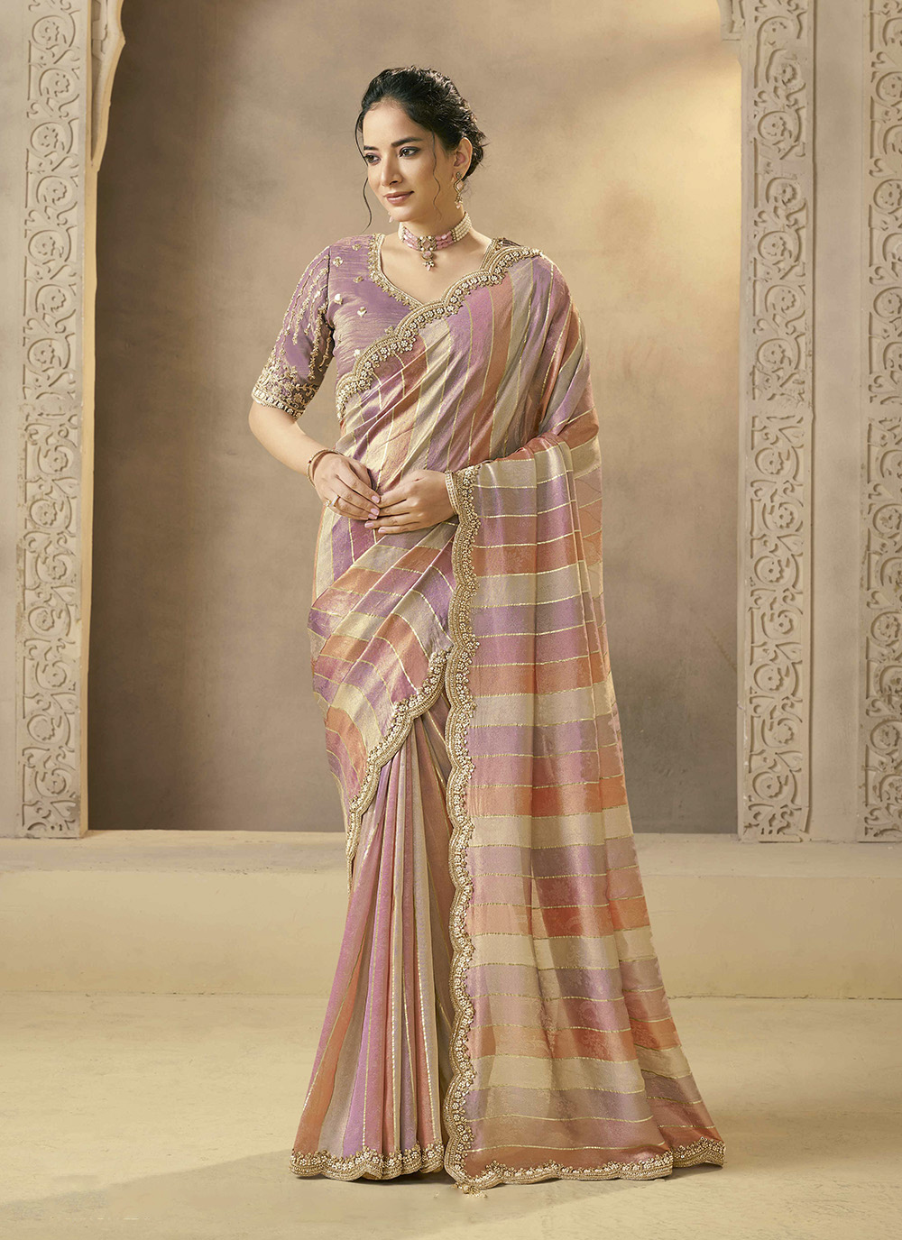 Look Attractive These Designer Party Wear Fancy Saree in Fine Colored.These Saree Are Matallic Kora Jari Silk And Blouse Matallic Kora Jari Silk is Fabricated.Its Beautified Fancy Sequance Embroidery,Beads Work,Scallops.