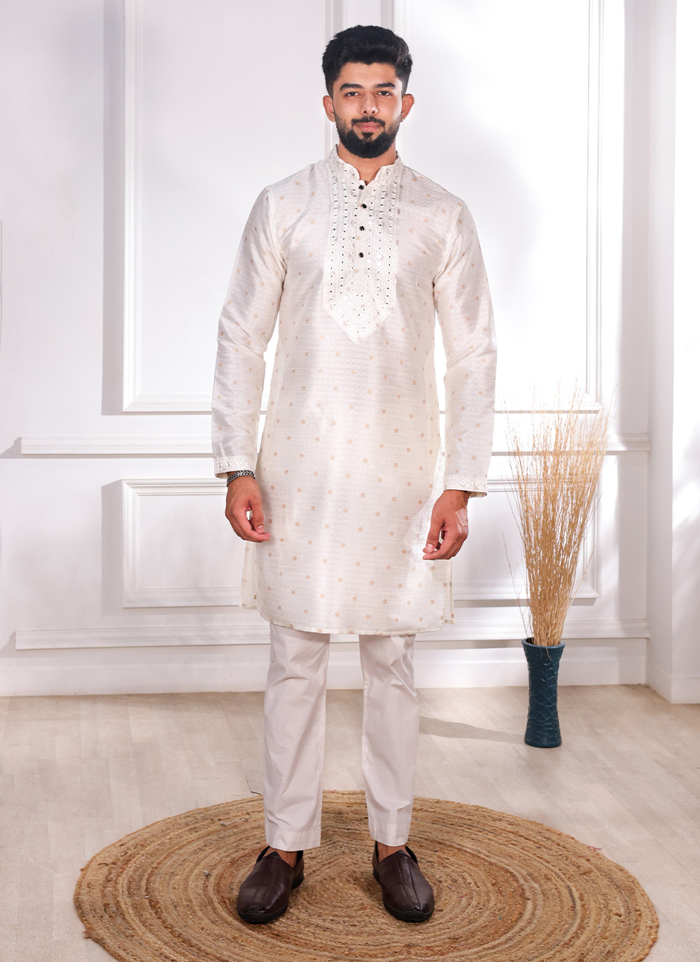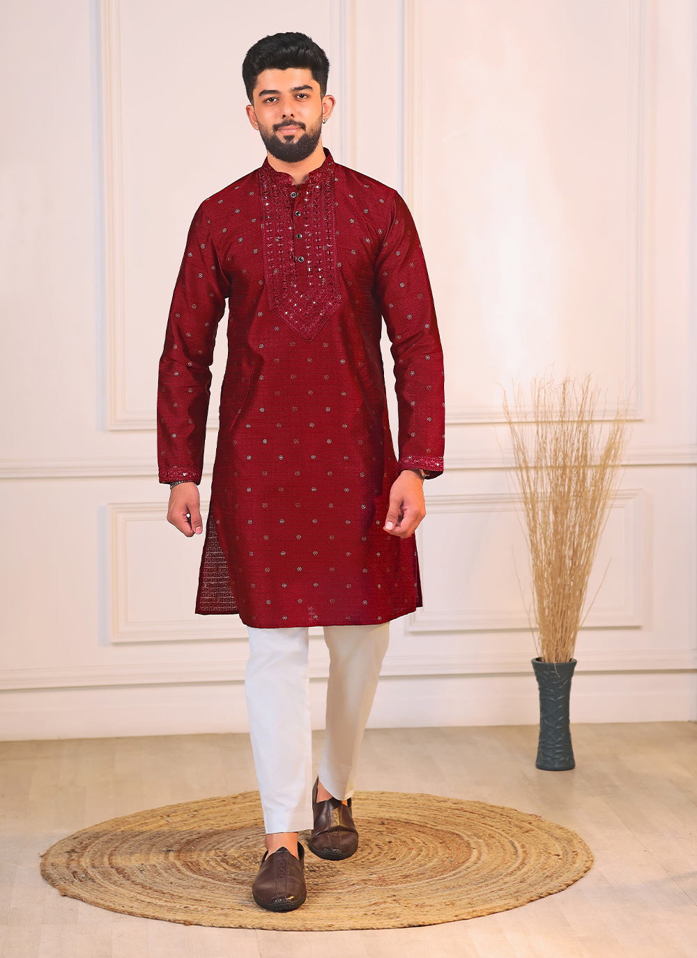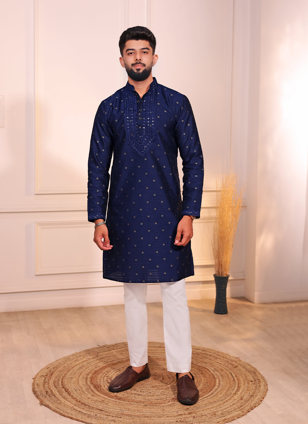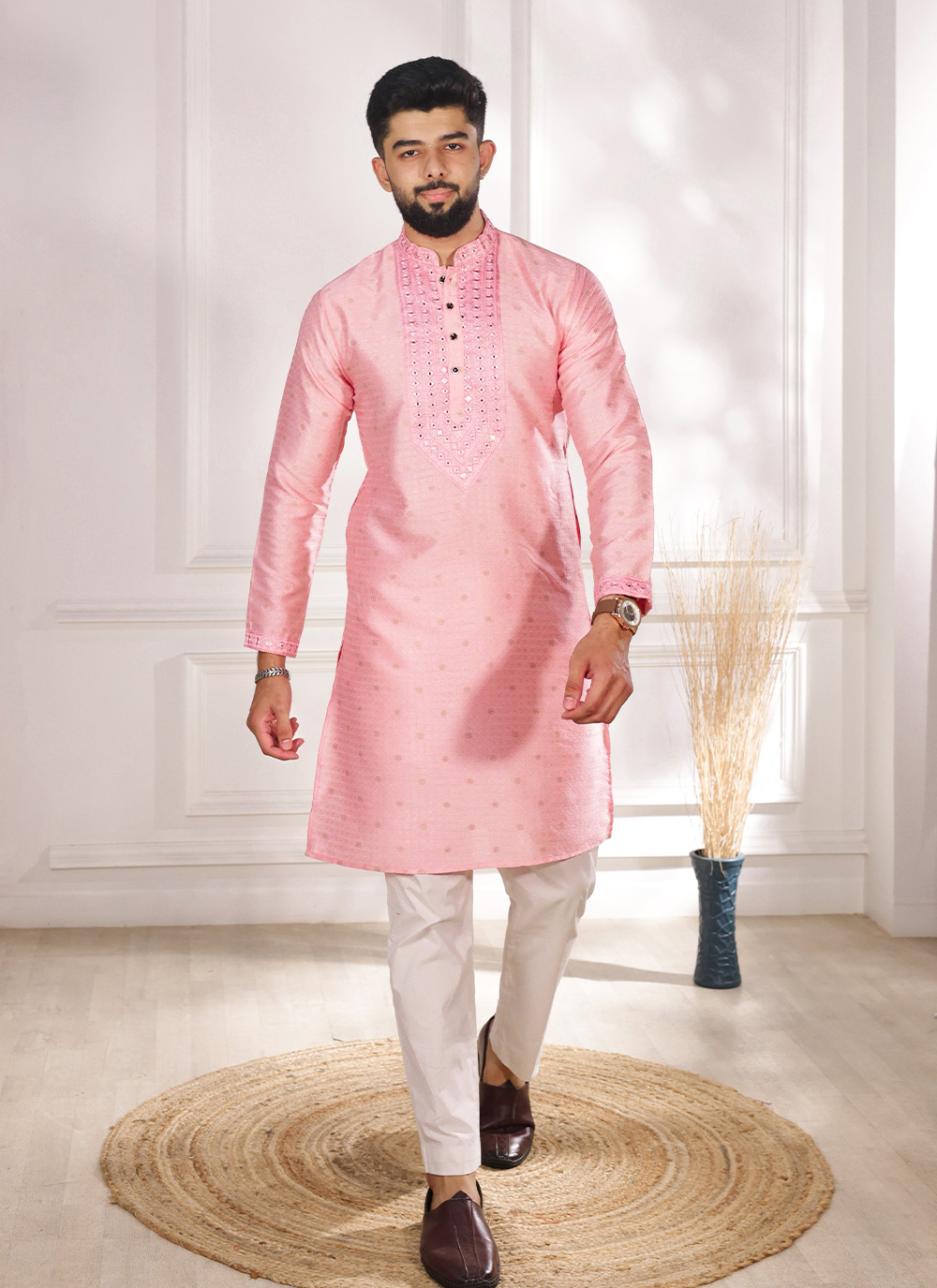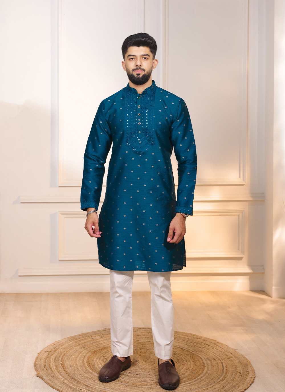 For A festive And Party Wear,Looking These Readymade Kurta With Payjama in Fine Colored.These Kurta is Fabricated On Jacquard Silk And Art Silk Bottom With Woven Butti Designer With Mirror Embroidery Work.Buy Now.