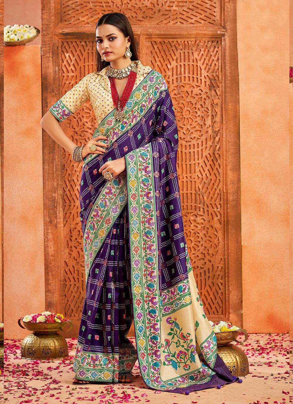 Attrective These Party Wear Saree in Fine Colored.These Saree Are Velvet Tussar Silk And Blouse is Fabricated On Velvet Tussar Silk Pair.Its Beautified With Designer Paithani Pallu With Ghatchola Printed.