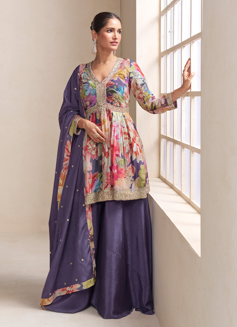 Garb These Party Wear Designer Plazzo Suit in Fine Colored Pair With Bottom And Dupatta.These Top And Bottom Are Fabricated On Chinon Pair With Chinon Dupatta.Its Beautified With Designer Printed With Embroidery Work.