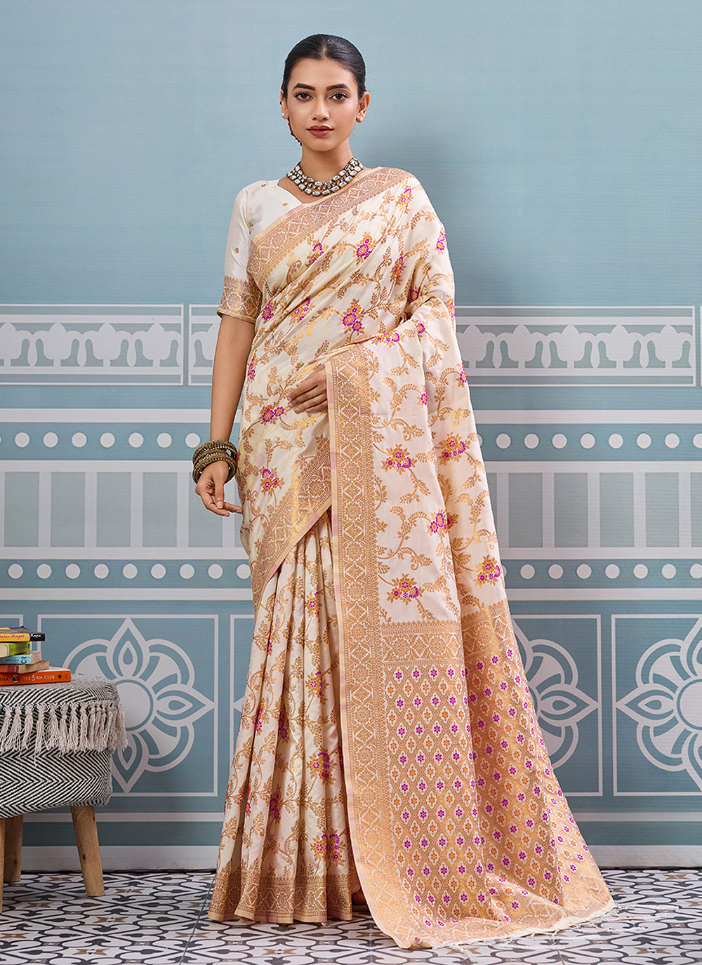 Garb These Fastive And Party Wear Saree in Fine Colored.These Saree And Blouse is Fabricated On Silk.Its Beautified With Heavy Woven Designer.