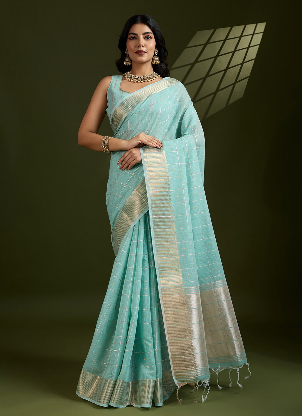 Looking These Festive Wear Saree in Fine Colored.These Saree And Blouse is Fabricated On Tissue Linen Silk.Its Beautified With Weaving Checks Designer.