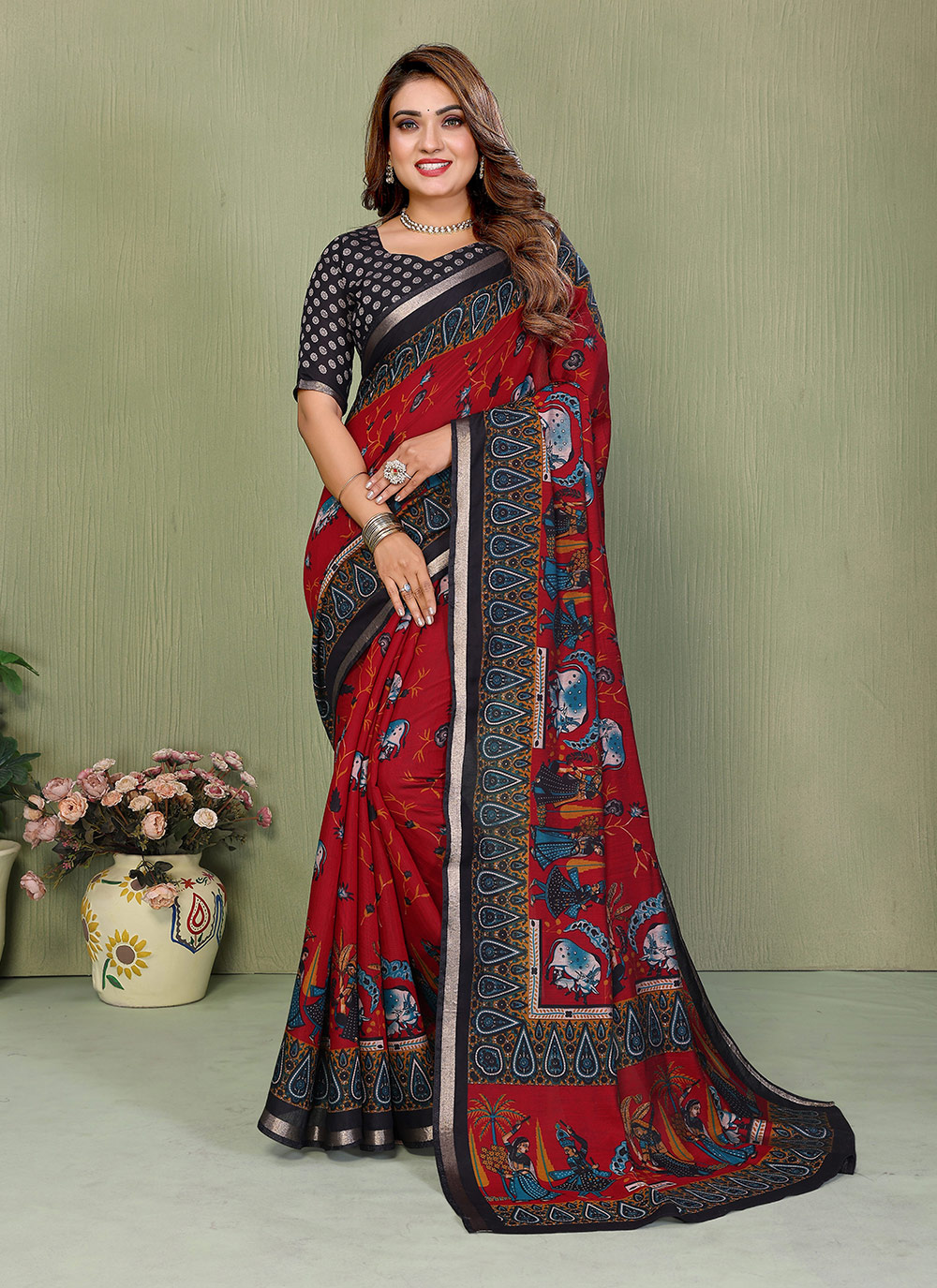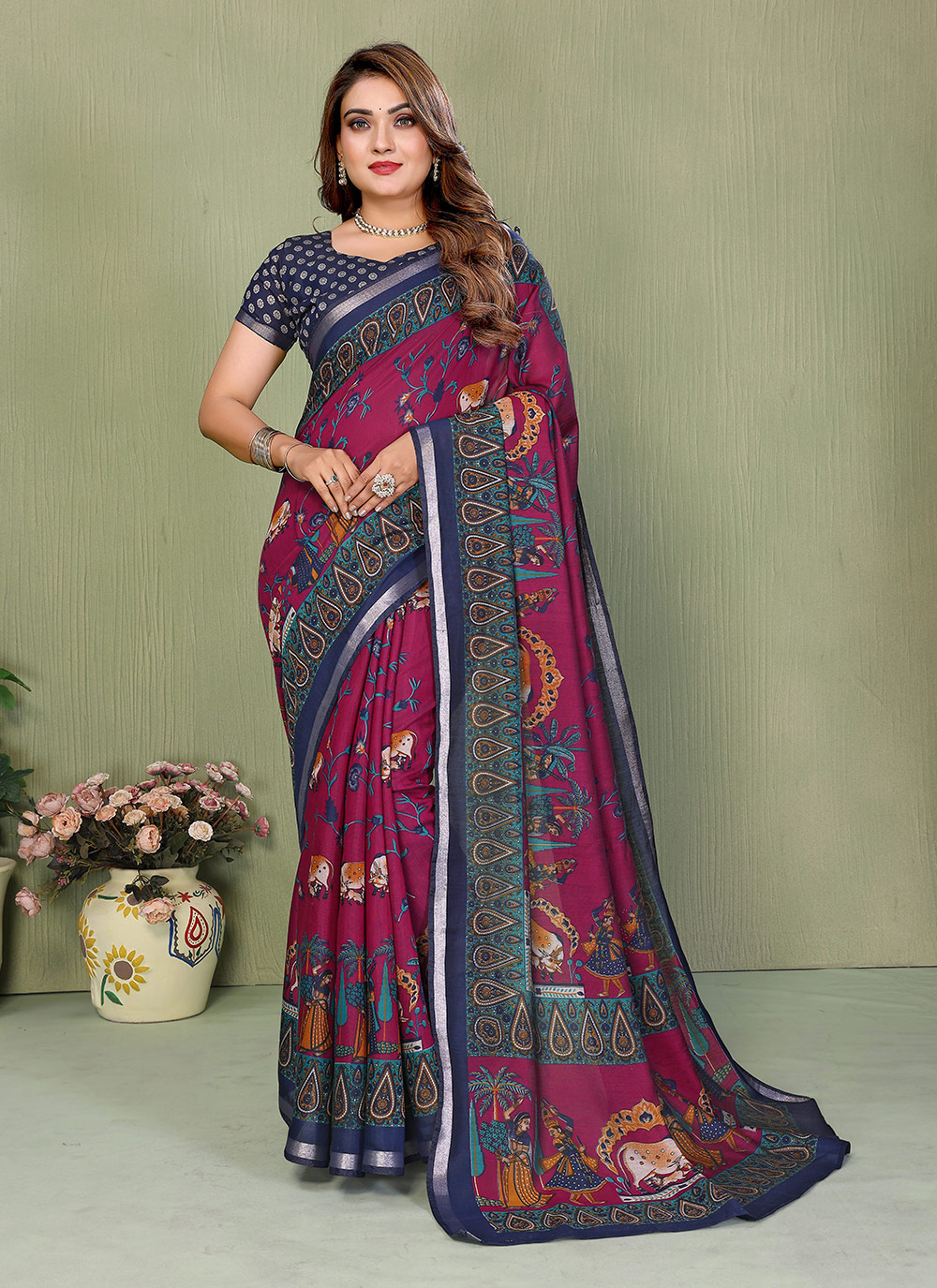 Looking These Party Wear Saree in Fine Colored.These Saree And Blouse is Fabricated On Mul Cotton.Its Beautified With Designer Kalamkari Printed.