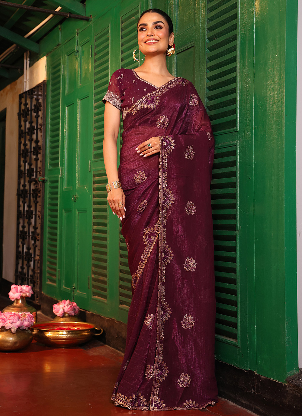 Garb These Fancy Party Wear Saree in Fine Colored.These Saree Are Organza And Blouse is Fabricated On Art Silk Pair.Its Beautified With Fancy Disigner Swarovski Work Saree.