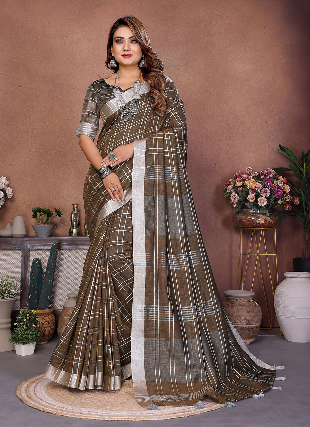 Garb These Party Wear Saree in Fine Colored.These Saree And Blouse is Fabricated On Linen Cotton.Its Beautified With Woven Checks Designer.
