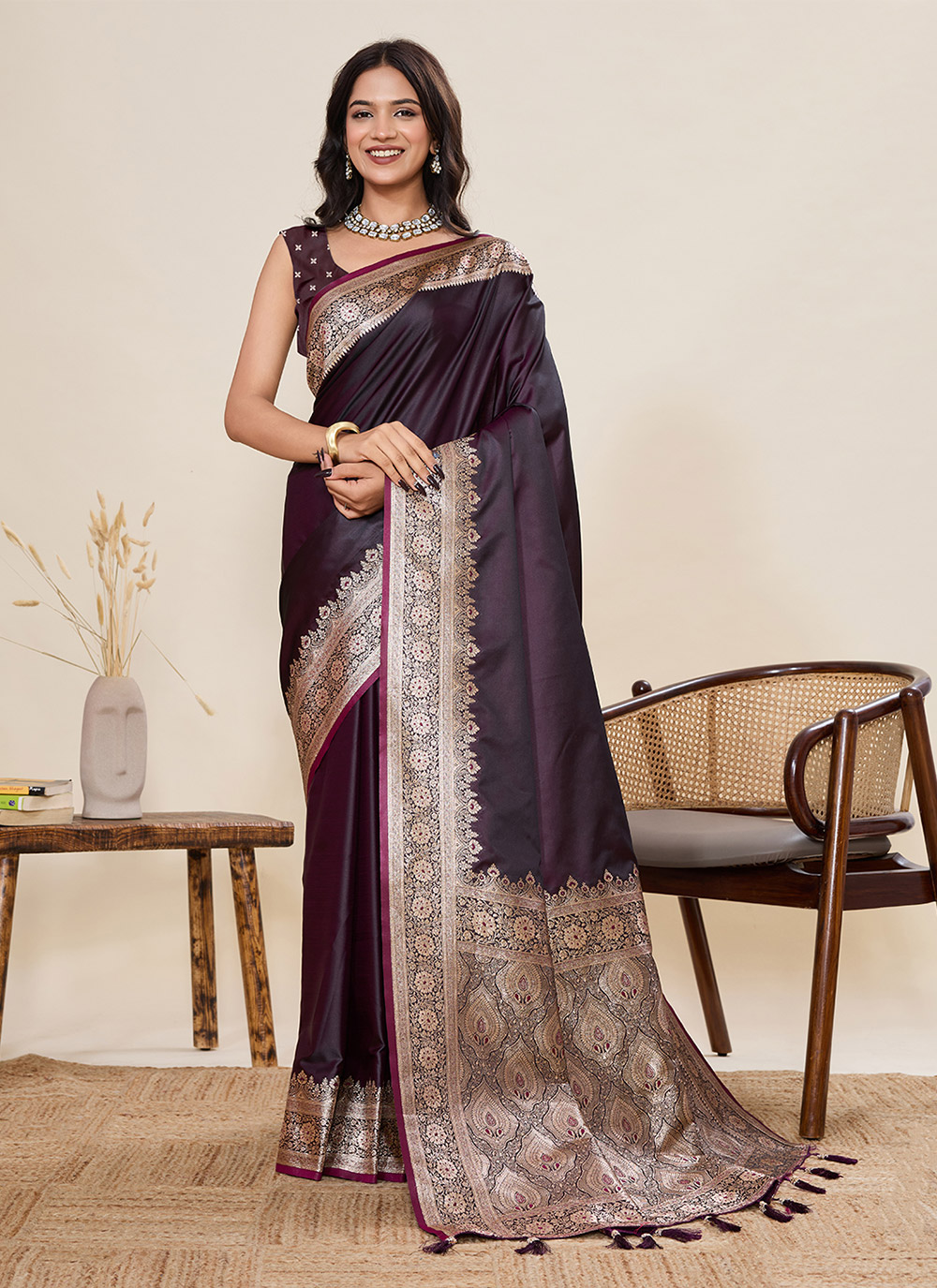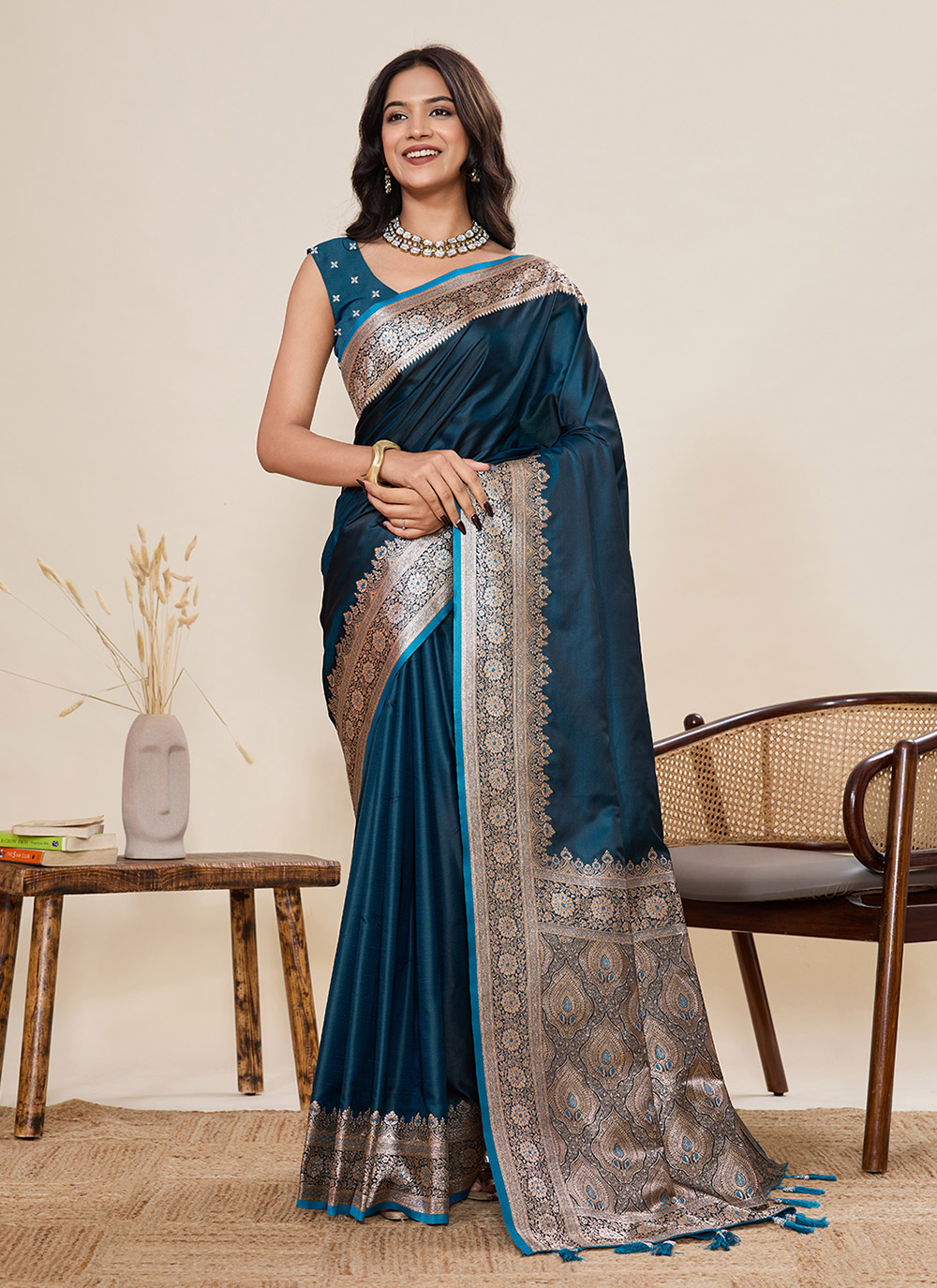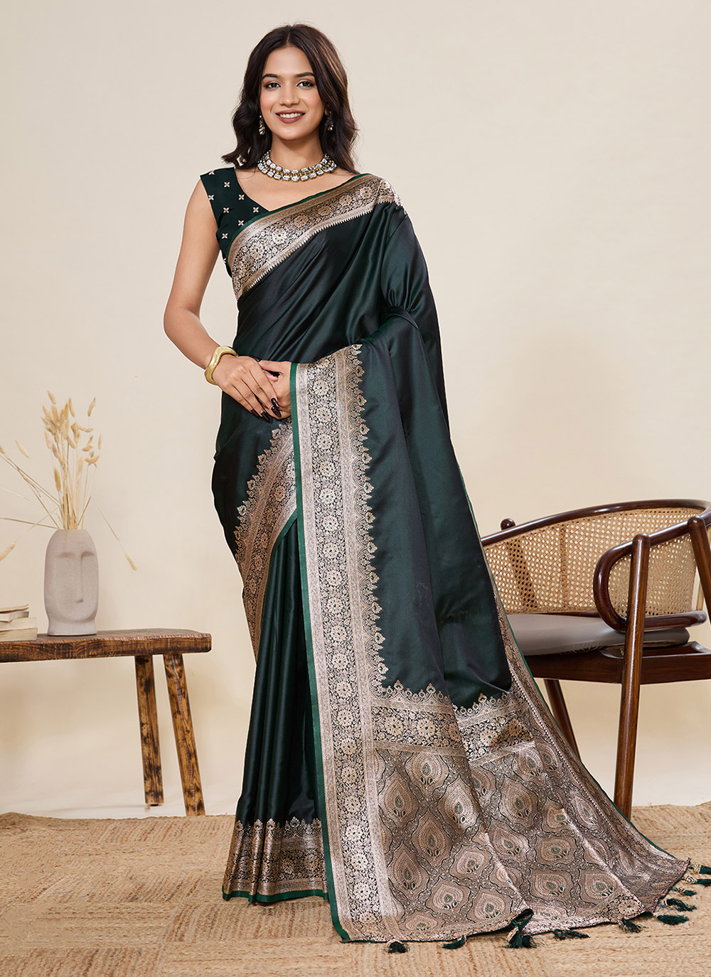 Looking This Party Wear Saree Paired With Blouse.This Saree And Blouse Are Satin Silk Fabric With Woven Jari Border Galla Designer. Buy This Pretty Saree Now.
