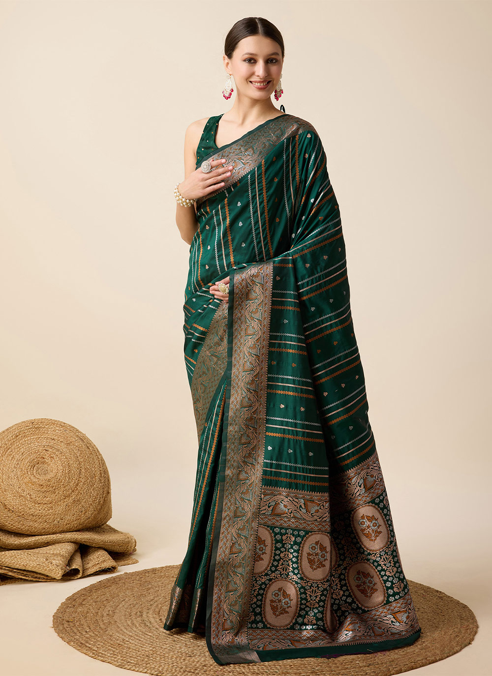 Garb This Party Wear Saree Paired With Blouse.This Saree And Blouse Are Jacquard Silk Fabric With Heavy Woven Sona Chandi Jari Designer. Buy This Pretty Saree Now.