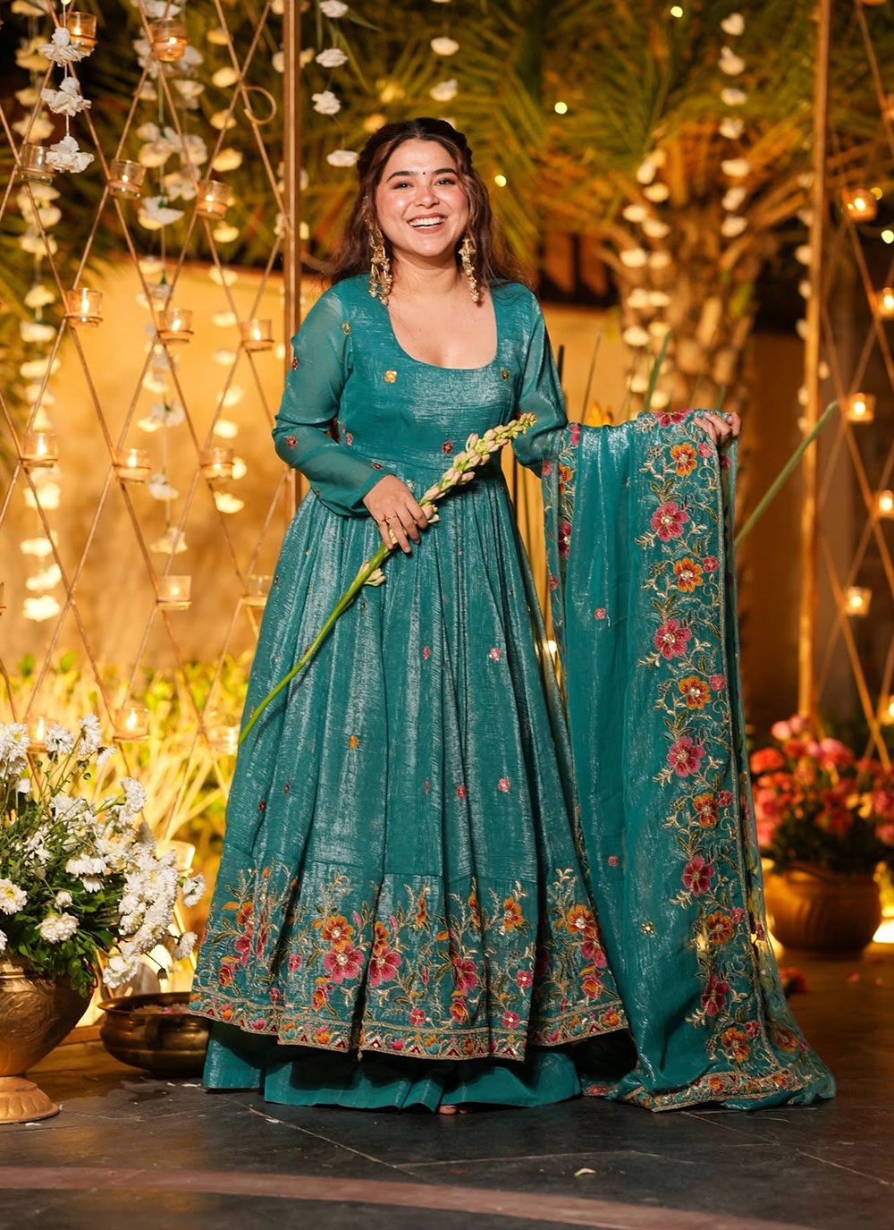 Attrective These Beautiful Looking Readymade Plazzo Suits.These Top And Bottom is Fabricated On Crunchy Silk And Crunchy Silk Dupatta.Its Beautified With Designer Thread,Sequance Embroidery Work .