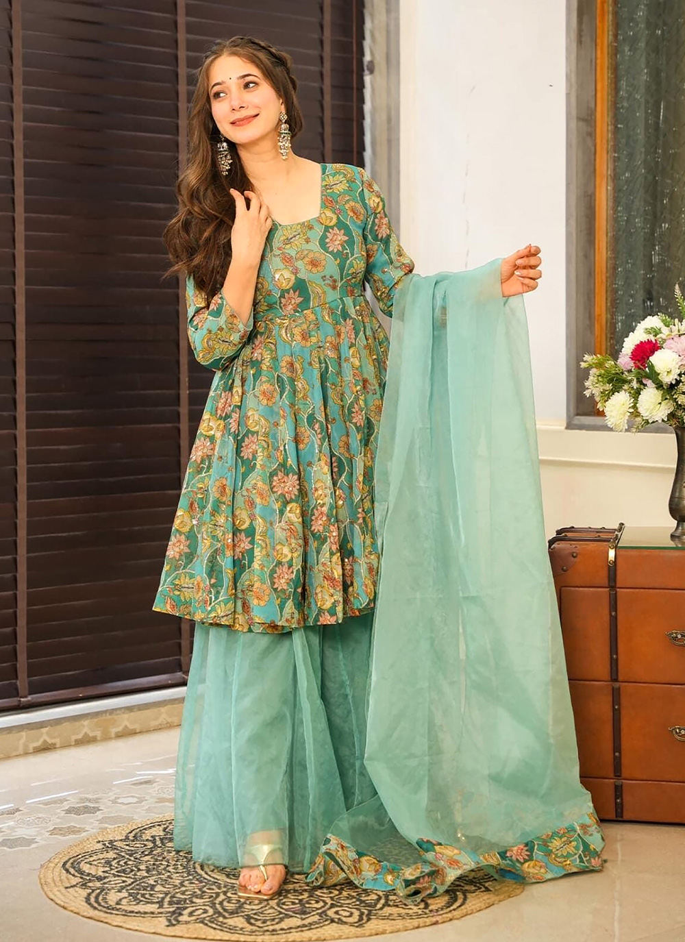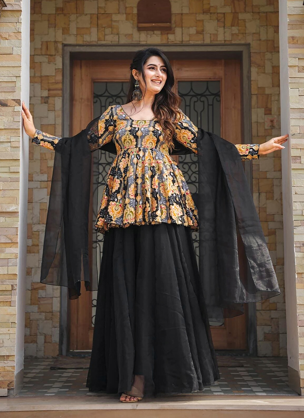 Attractive Looking These Beautiful Looking Readymade Sharara Suits.These Top Are Silk And Bottom is Fabricated On Organza And Organza Dupatta.Its Beautified With Designer Digital Printed.
