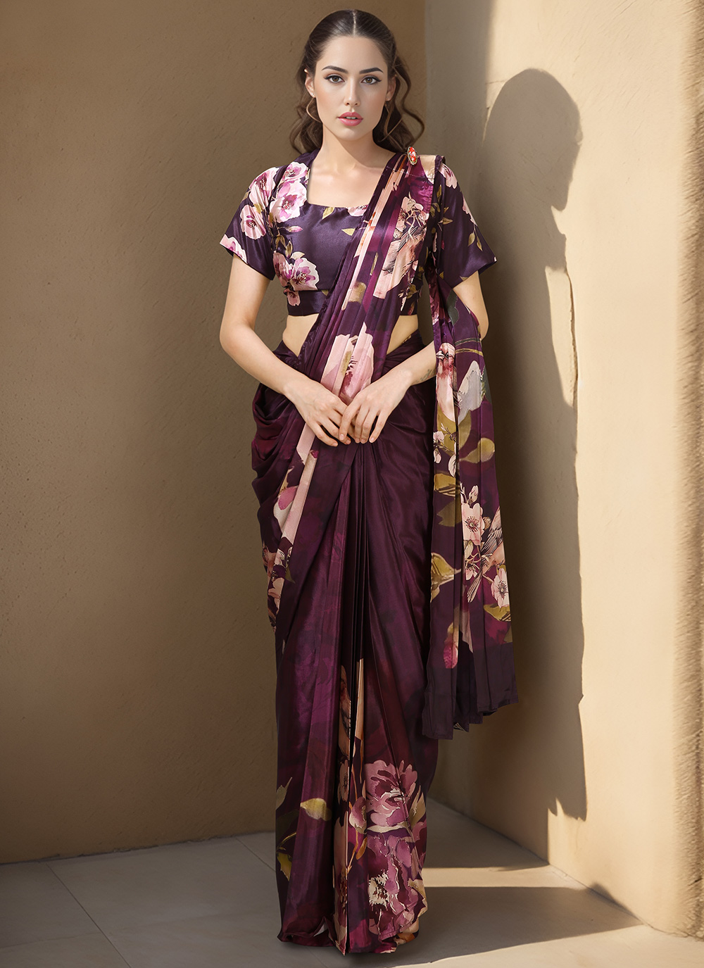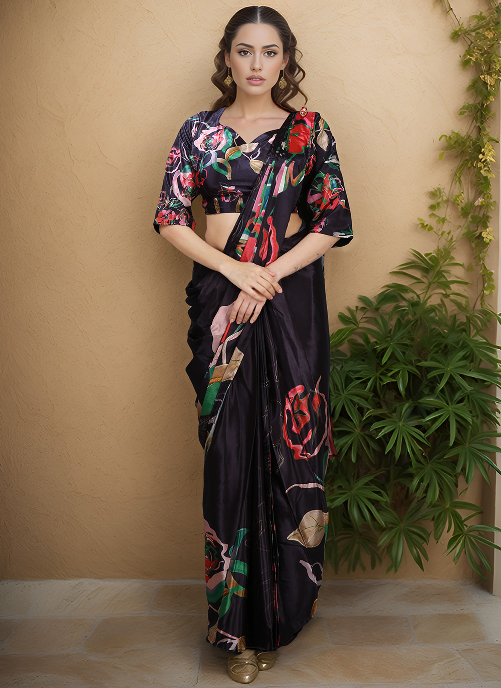 Looking These Party Wear Ready To Wear Saree With Blouse in Fine Colored.These Saree Are Silk Crepe And Blouse is Silk Crepe Fabricated.Its Beautified With Designer Digital Printed.
