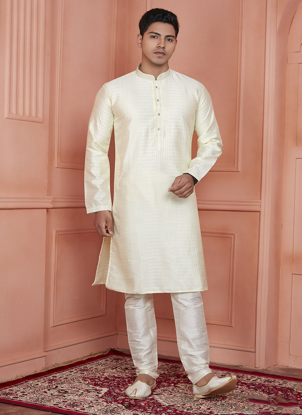 Looking These Party Wear Mans Wear Kutra Payjama wearing this fashionable. These Kurta Are Jacquard Silk And Payjama Art Silk finest Fabriced With Woven Designer With Embroidery Work.
