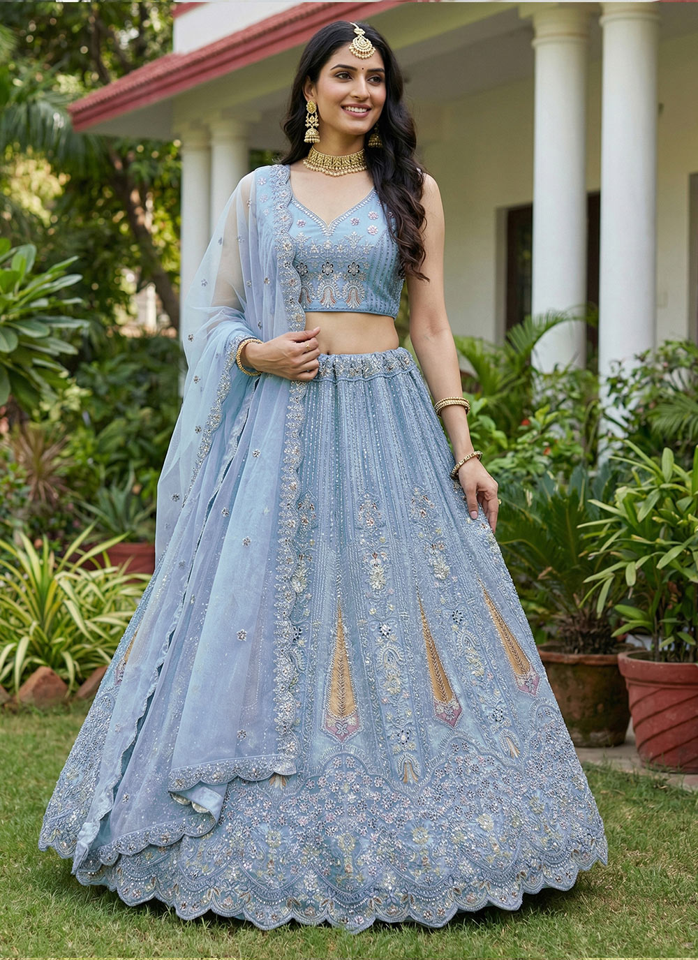 For A Fancy Designer Look,Grab These Lehenga Choli With Dupatta in Fine Colored.These Lehenga And Choli Are Bridal Net And Dupatta Are Fabricated On Soft Net Pair.Its Beautified With Fancy Dori, Sequance,Multy Thread,Jari Embroidery,Zarcon Diamond Work.