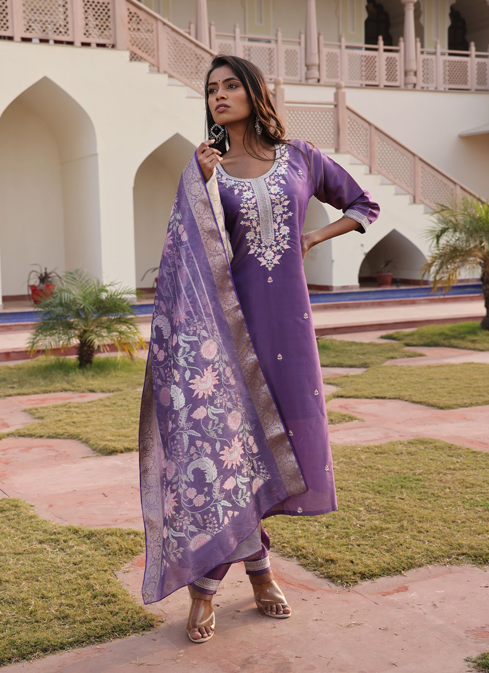 Attractive These Party Wear Suit in Fine Colored Pair With Bottom And Dupatta.These Top And Bottom Are Fabricated On Cotton Silk Pair With Jacquard Simmer Dupatta.Its Beautified With Designer Embroidery Work.