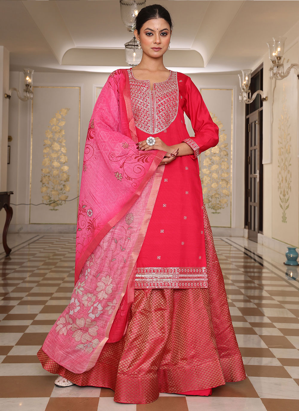 Attractive These Party Wear Suit in Fine Colored Pair With Bottom And Dupatta.These Top And Bottom Are Fabricated On Simmer Silk Pair With Jacquard Simmer Dupatta.Its Beautified With Designer Embroidery Work.