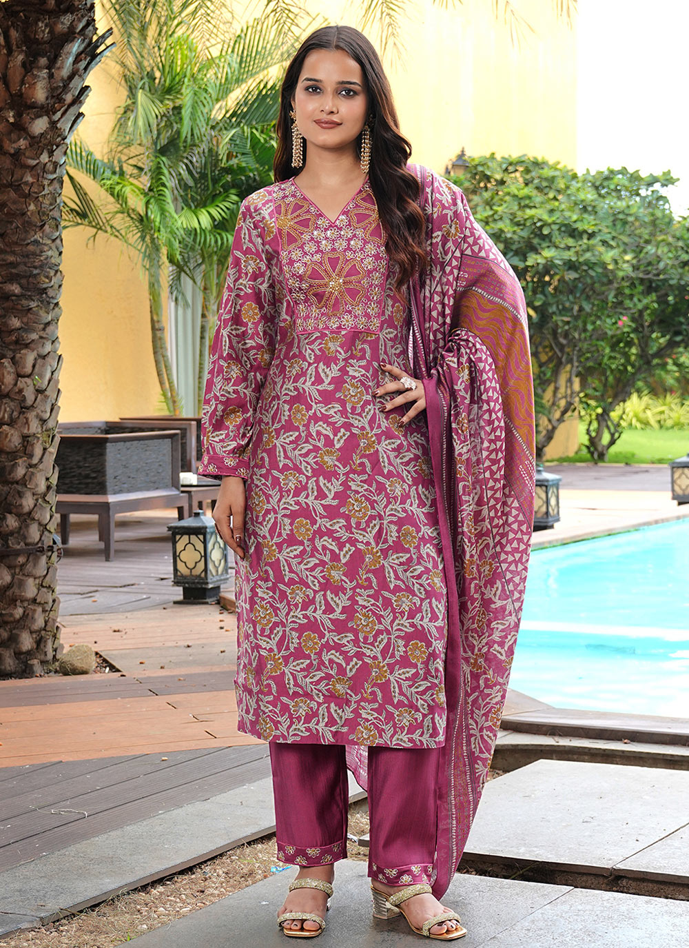Attractive These Party Wear Suit in Fine Colored Pair With Bottom And Dupatta.These Top And Bottom Are Fabricated On Cotton Silk Pair With Cotton Silk Dupatta.Its Beautified With Designer Printed With Embroidery Work.