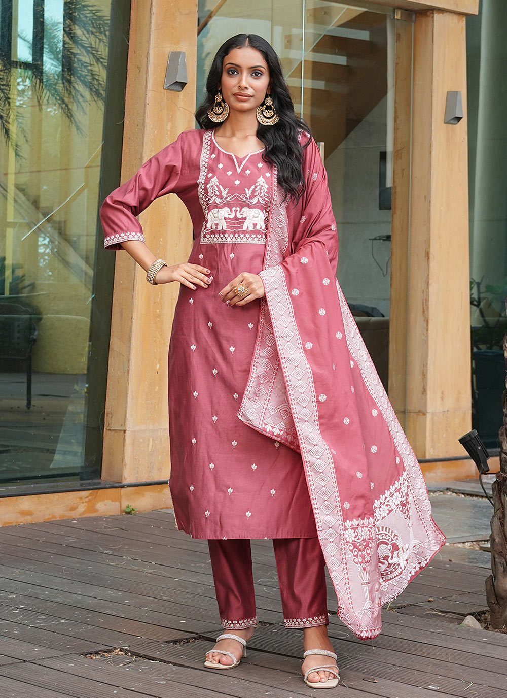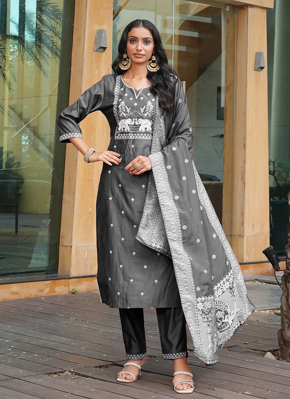 Attractive These Party Wear Suit in Fine Colored Pair With Bottom And Dupatta.These Top And Bottom Are Fabricated On Vatican Pair With Chanderi Jacquard Dupatta.Its Beautified With Designer Embroidery Work.