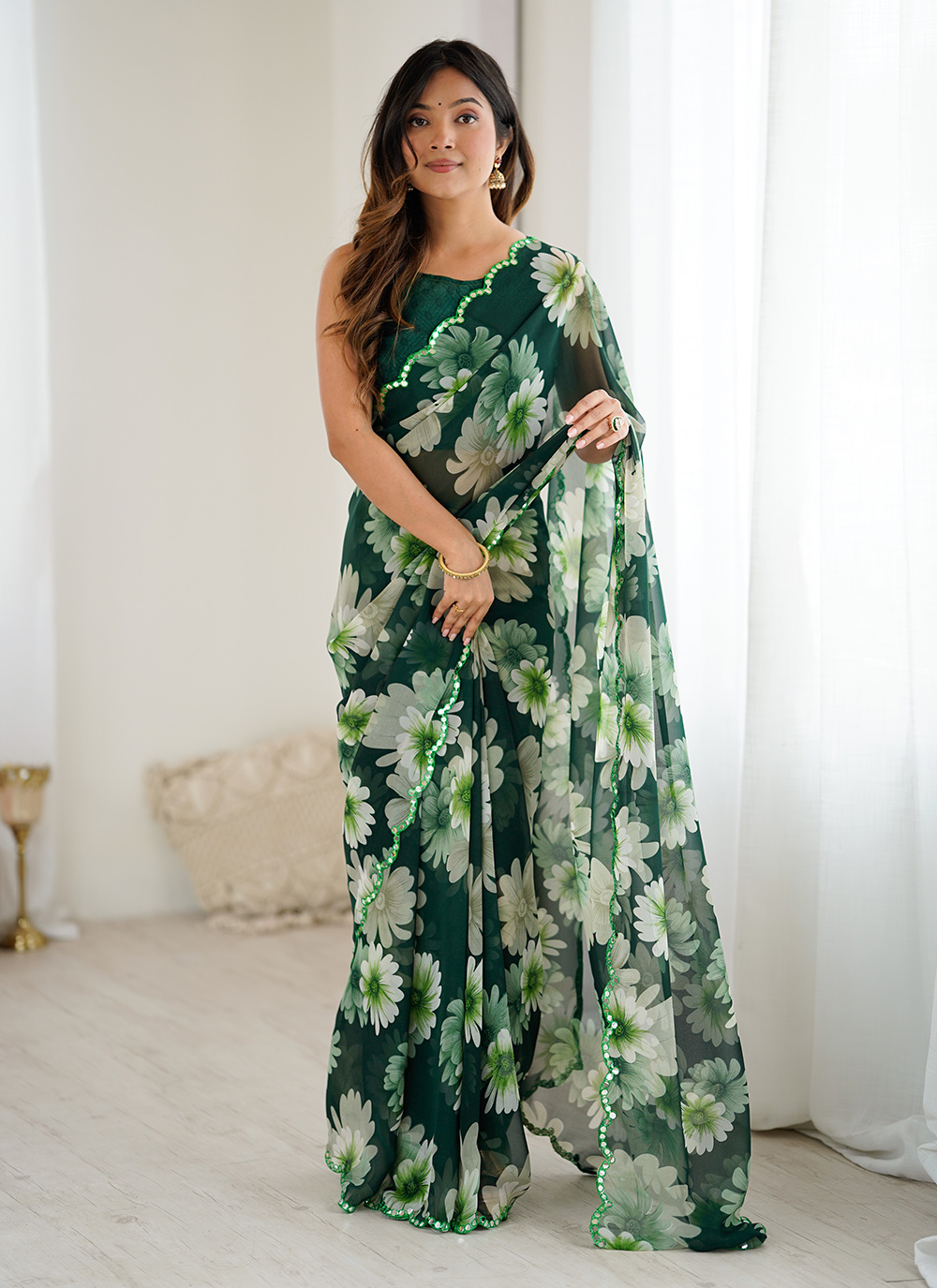 Looking These Party Wear Saree in Fine Colored.These Saree Are Georgette And Blouse is Georgette Fabricated.Its Beautified With Designer Printed With Mirrar Cut Work.