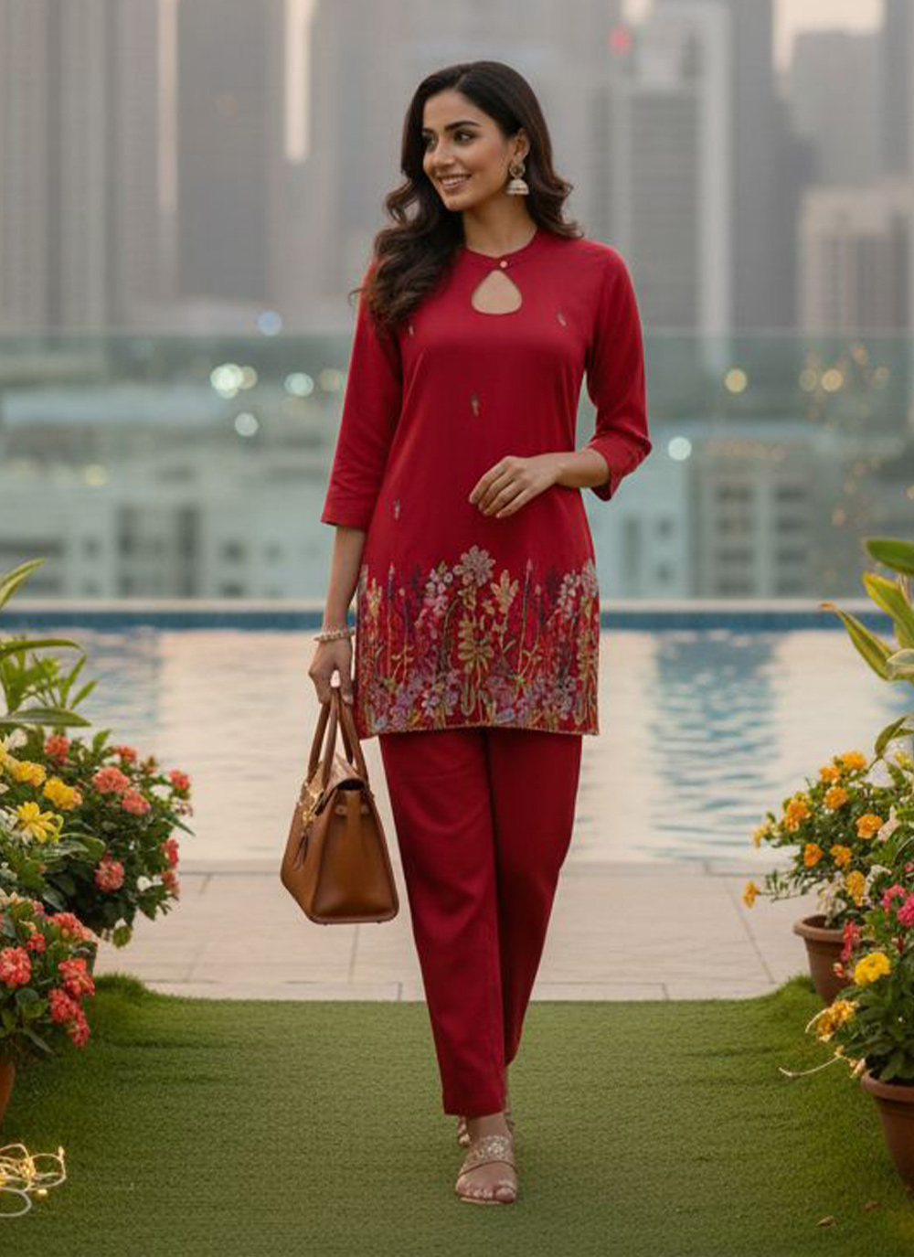 Attactive These Designer Co Ord Ready Made Dress in Fine Colored.These Top Are Bindu Bubbal And Bottom Are Fabricated On Bindu Bubbal Pair.Its Beautified With Designer Embroidery Work.