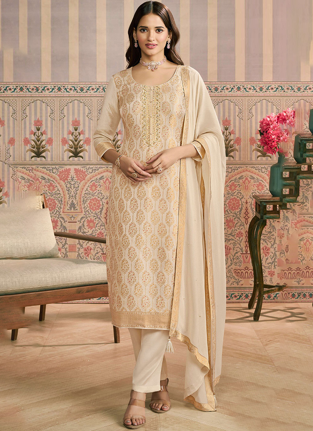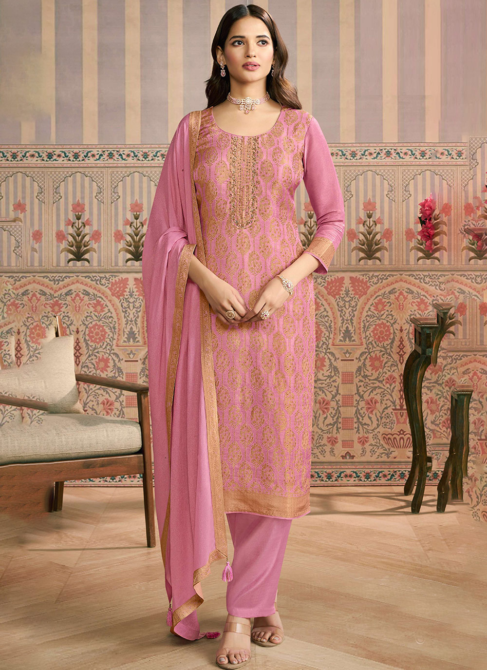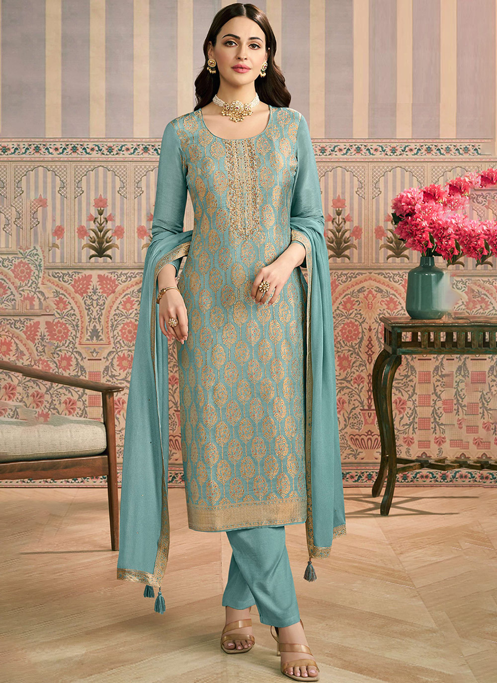 Garb These Party Wear Designer Suit in Fine Colored Pair With Bottom And Dupatta.These Top Are Viscose Jacquard And Dupatta Are Fabricated On Vichitra Silk Pair With Santoon Bottom.Its Beautified With Santoon Inner.Its Beautified With Heavy Weaving Designer With Embroidery Work.