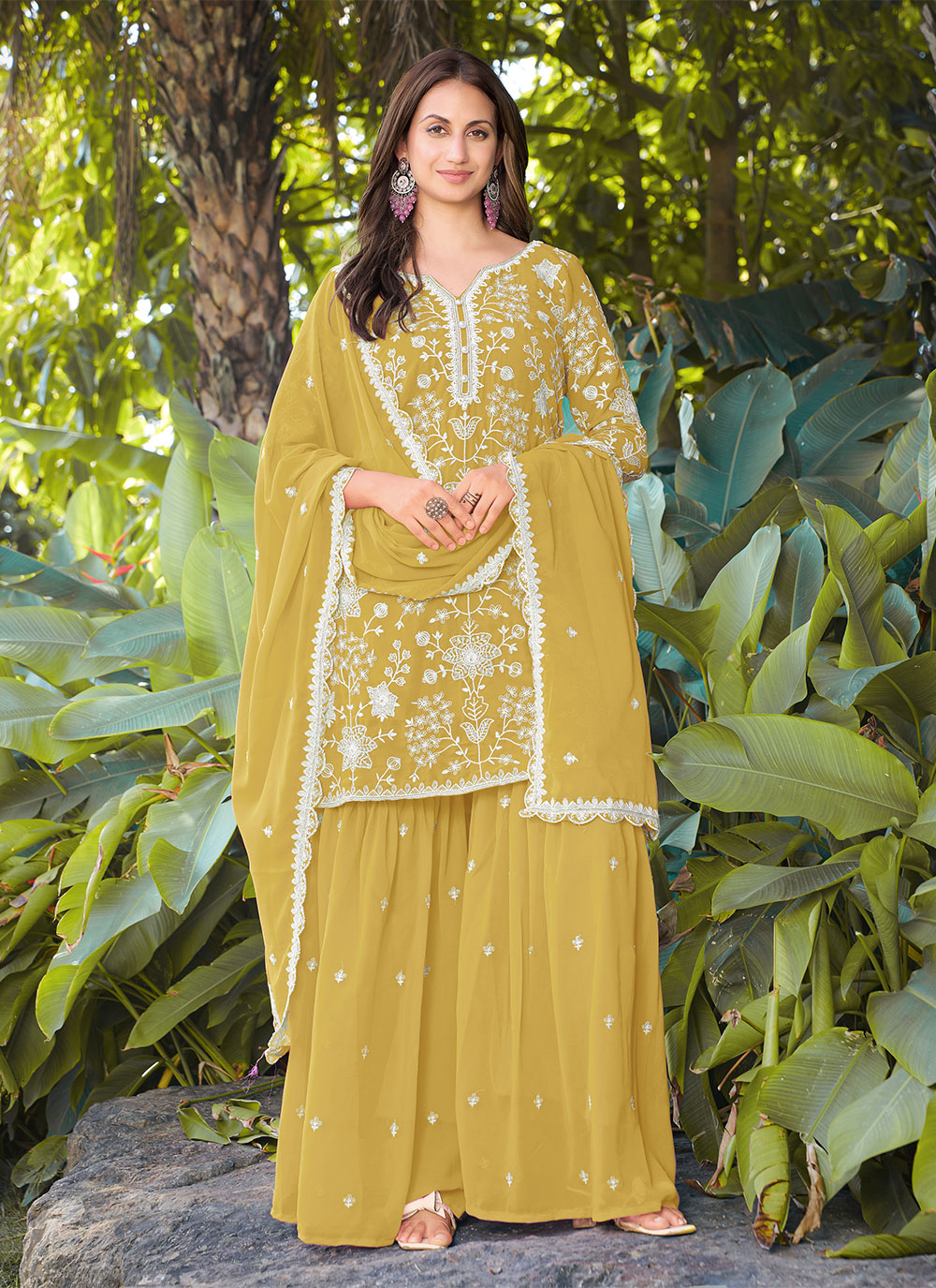Attrective Looking These Party Wear Suit in Fine Colored Pair With Bottom And Dupatta.These Top Are Georgette And Dupatta Are Fabricated On Georgette Pair With Georgette Bottom.Its Beautified With Designer Embroidery,Beads Work.