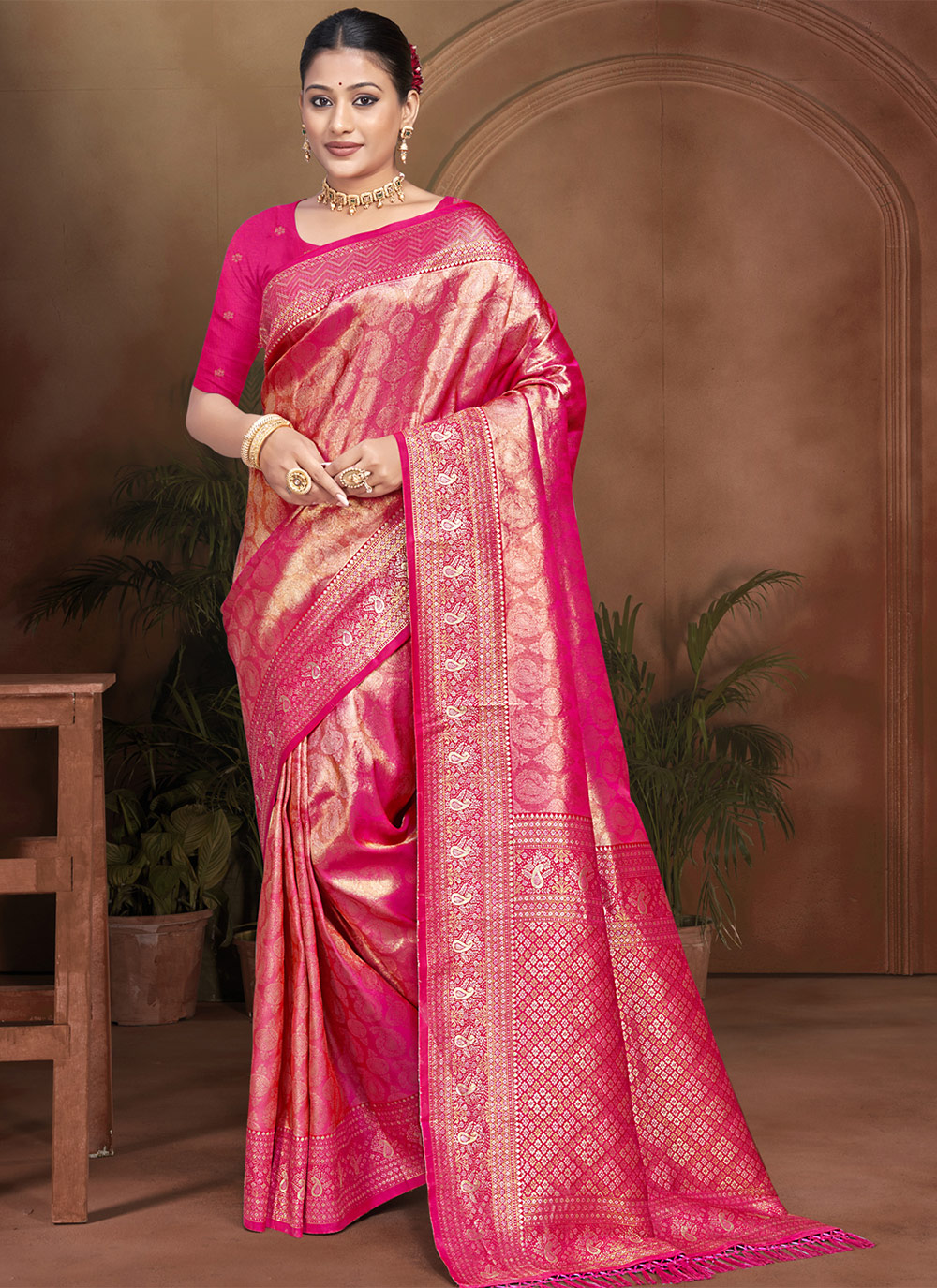 Garb These Fastive And Party Wear Saree in Fine Colored.These Saree And Blouse is Fabricated On Kanjivaram Silk.Its Beautified With Woven Designer.