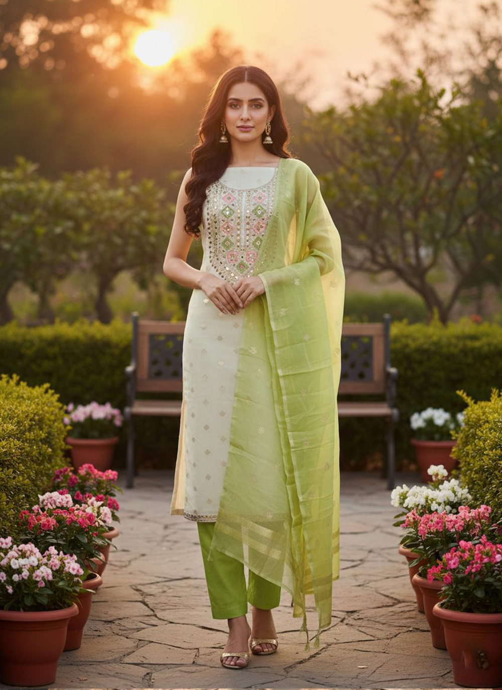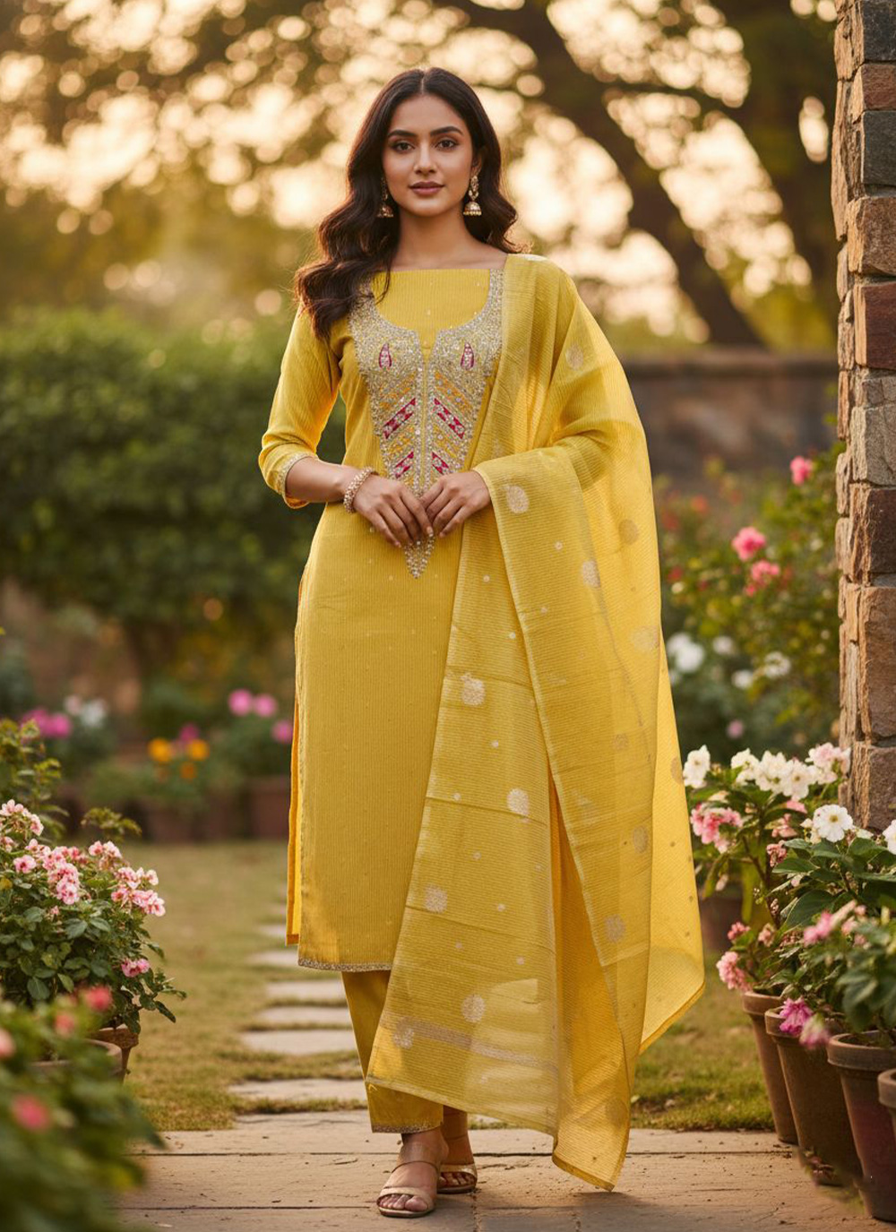 Looking These Disigner Suit in Fine Colored Pair With Bottom And Dupatta.These Top Are Kasha Simmer And Dupatta Are Fabricated On Kasha Simmer Pair With Santoon Bottom.Its Beautified With Woven Designer With Embroidery Work.