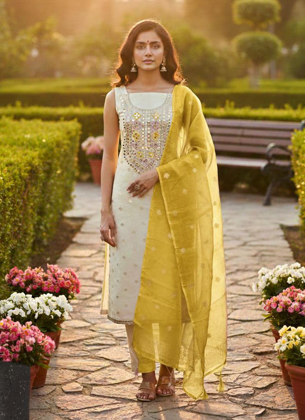 Looking These Disigner Suit in Fine Colored Pair With Bottom And Dupatta.These Top Are Simmer Jacquard And Dupatta Are Fabricated On Simmer Jacquard Pair With Santoon Bottom.Its Beautified With Woven Designer With Embroidery Work.