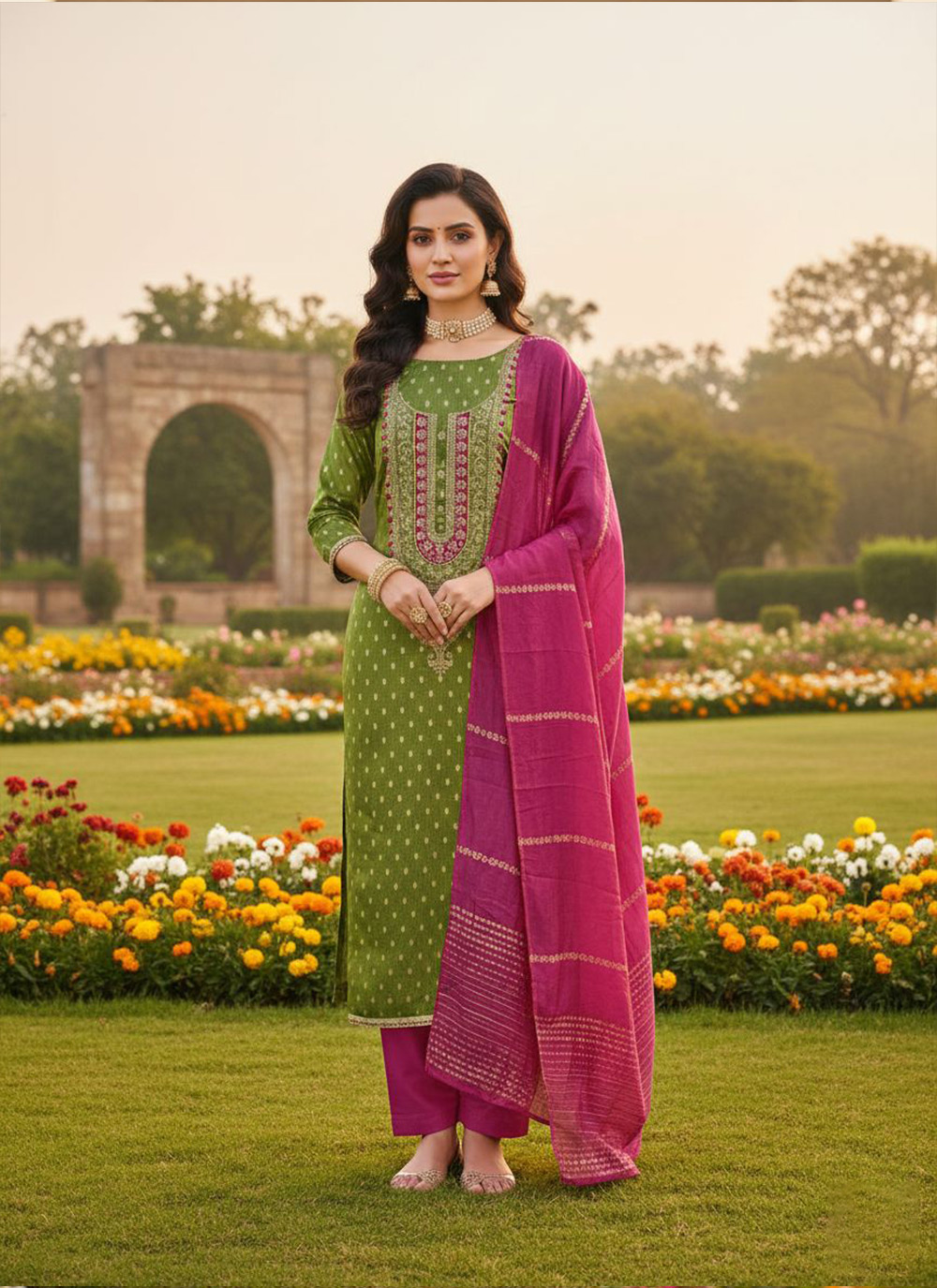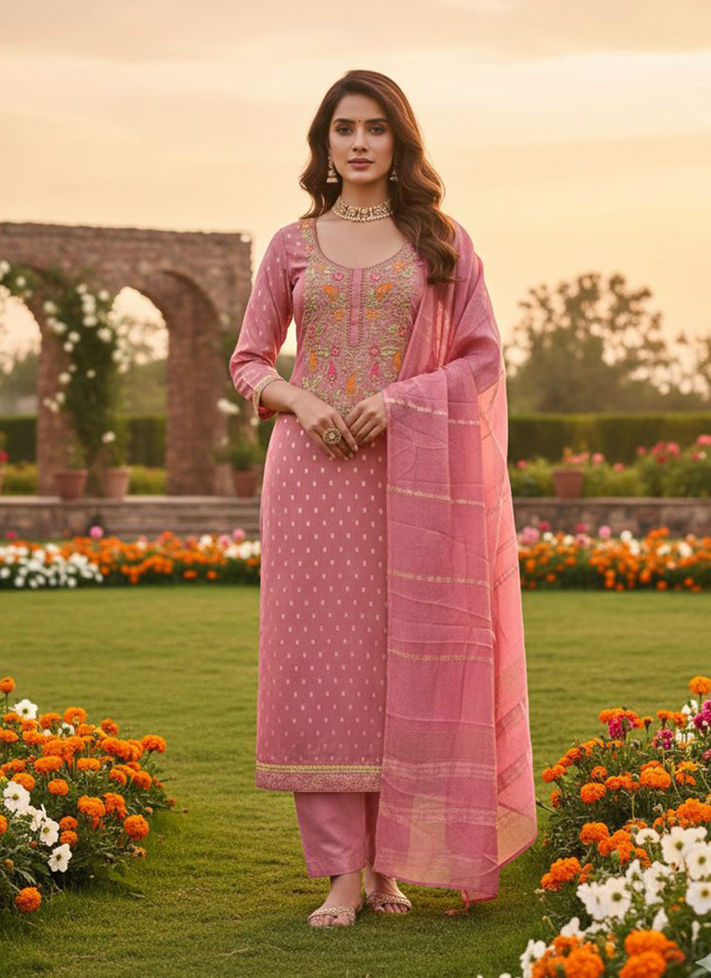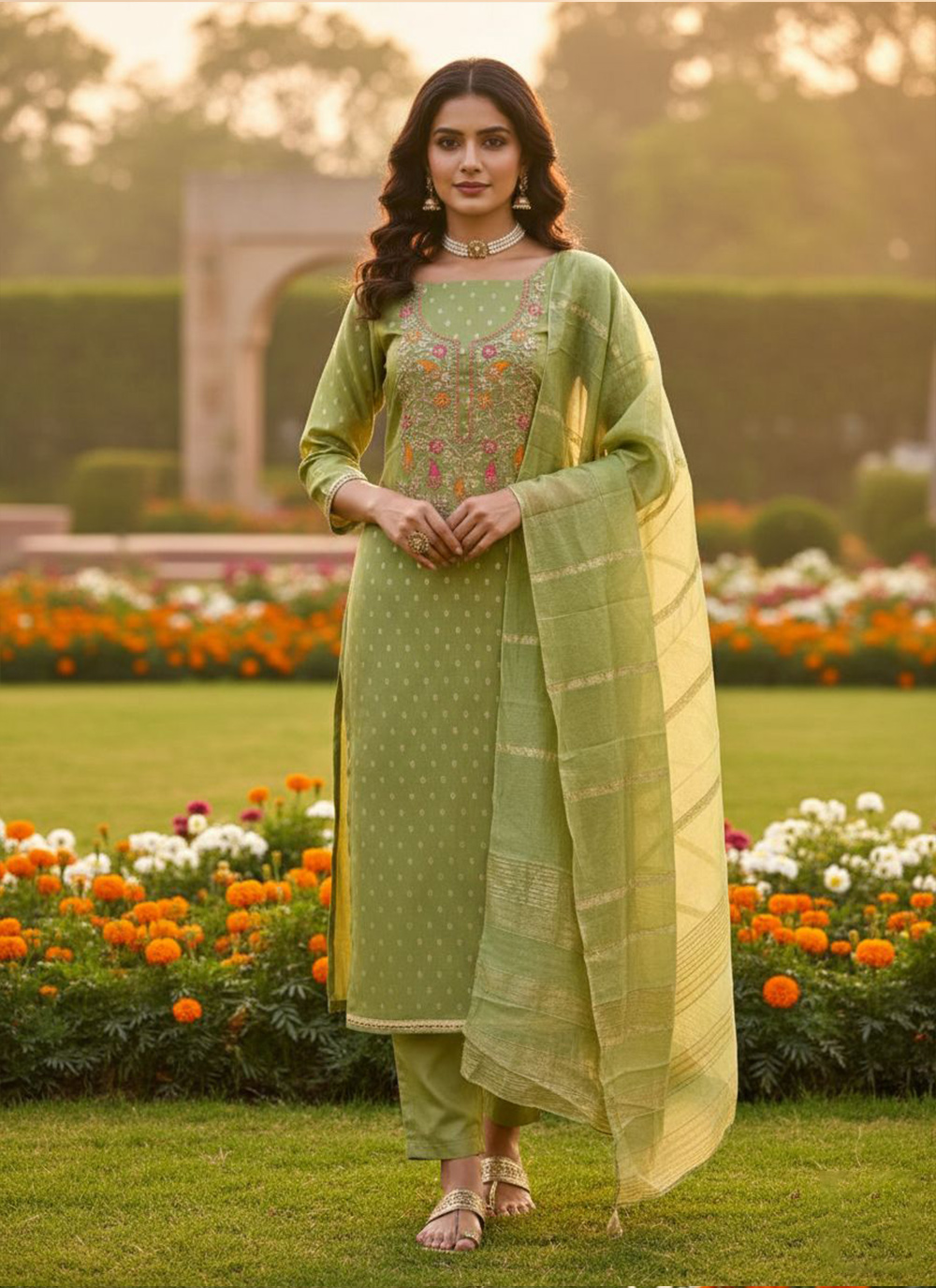 Looking These Disigner Suit in Fine Colored Pair With Bottom And Dupatta.These Top Are Simmer Jacquard And Dupatta Are Fabricated On Simmer Jacquard Pair With Santoon Bottom.Its Beautified With Woven Designer With Embroidery Work.