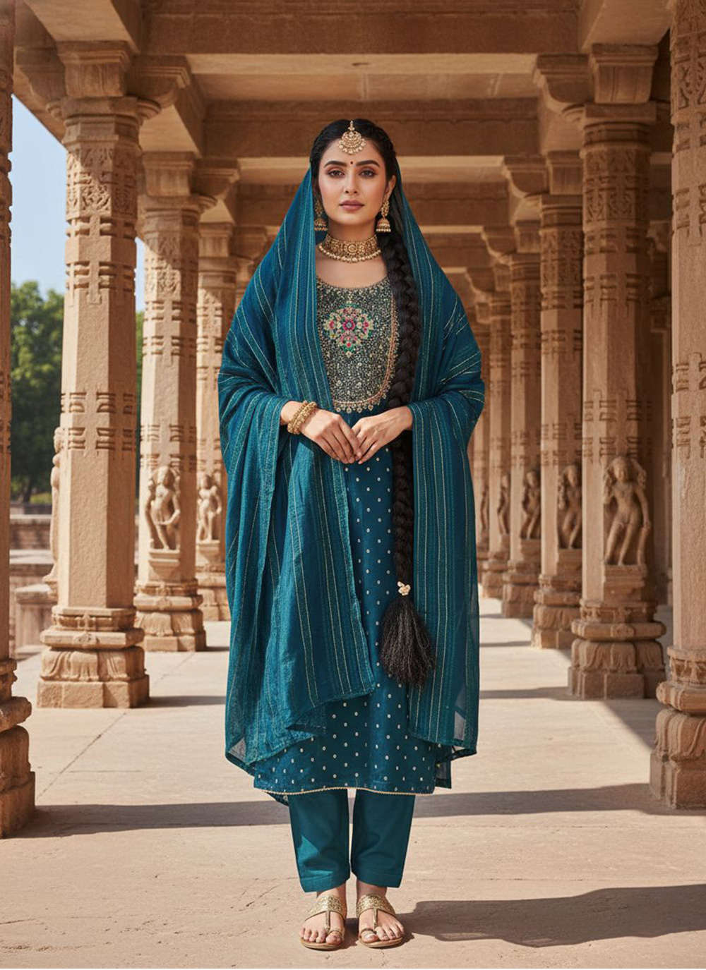 Looking These Disigner Suit in Fine Colored Pair With Bottom And Dupatta.These Top Are Modal Butti And Dupatta Are Fabricated On Modal Jacquard Pair With Santoon Bottom.Its Beautified With Woven Designer With Coding Embroidery Work.