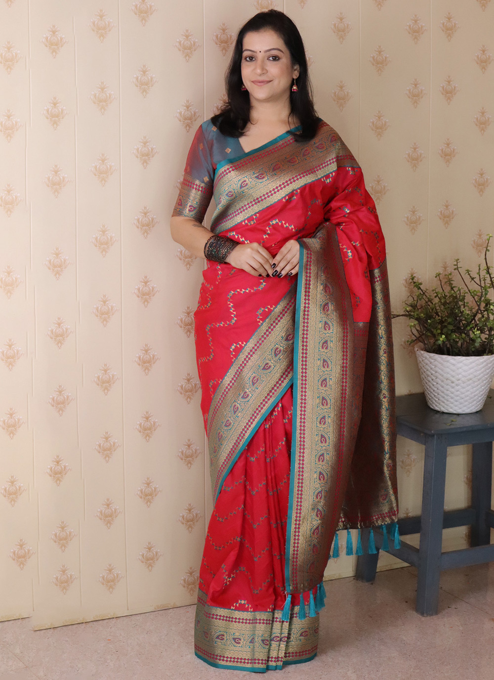Looking These Party Wear Saree in Fine Colored.These Saree And Blouse is Fabricated On Banarasi Silk.Its Beautified With Weaving Gold Jari Designer.