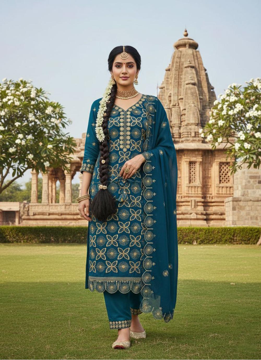 Garb These Disigner Suit in Fine Colored Pair With Bottom And Dupatta.These Top Are Star Georgette And Dupatta Are Fabricated On Star Georgette Pair With Santoon Bottom.Its Beautified With Designer Embroidery,Swarovski Work.